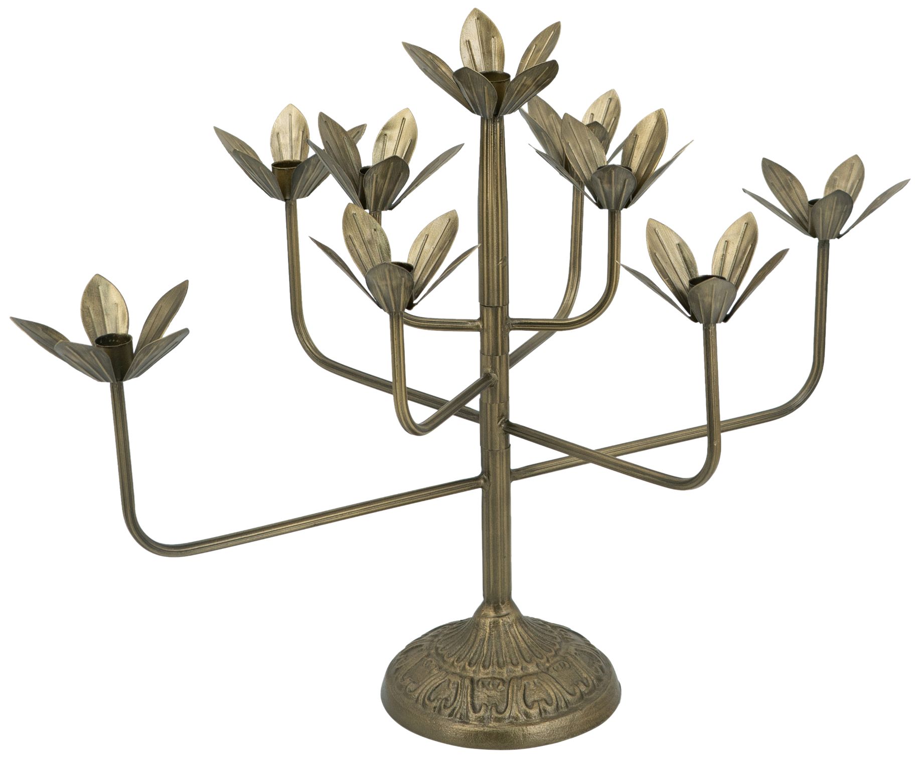 9-Arm Decorative Antique Gold Iron Candelabra with Floral Design