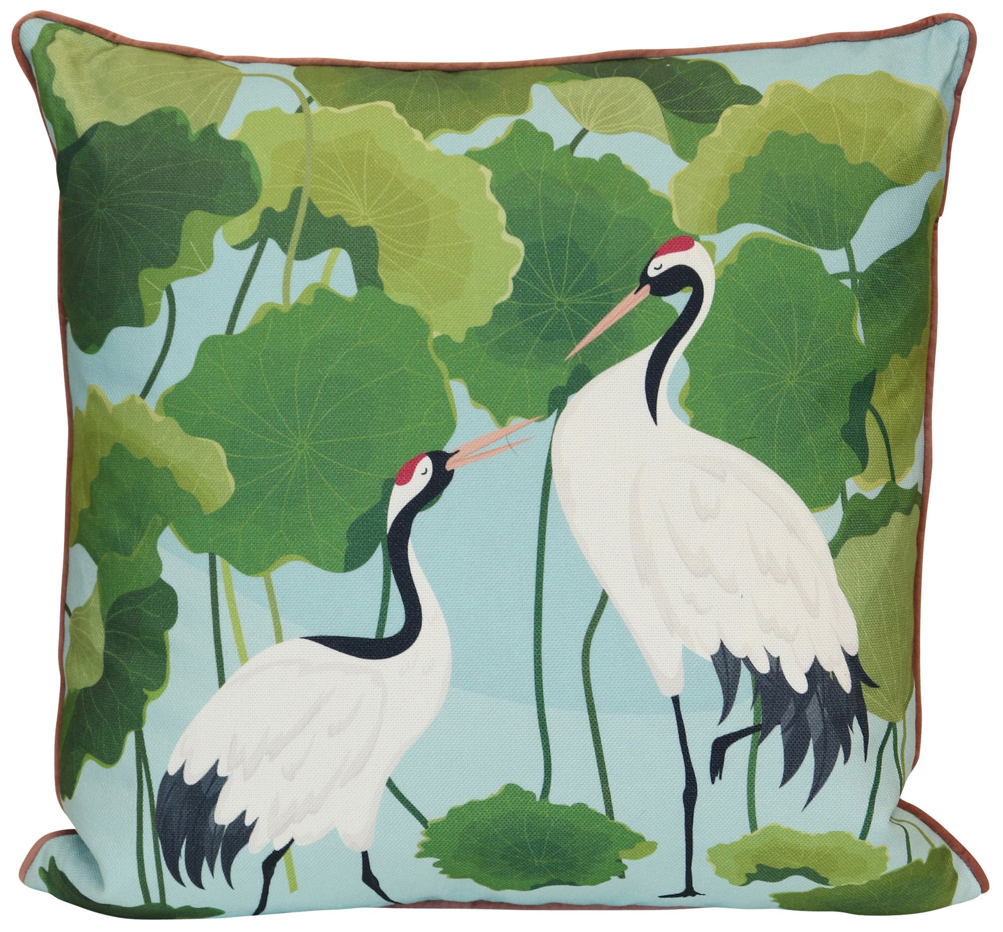 Emerald Crane Garden 22" x 22" Multicolor Pillow