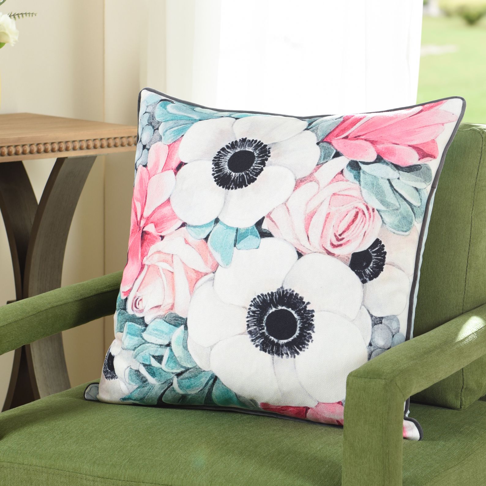 Petal Drift Bloom 22" x 22" Soft Ivory, Magenta, Muted Green Pillow