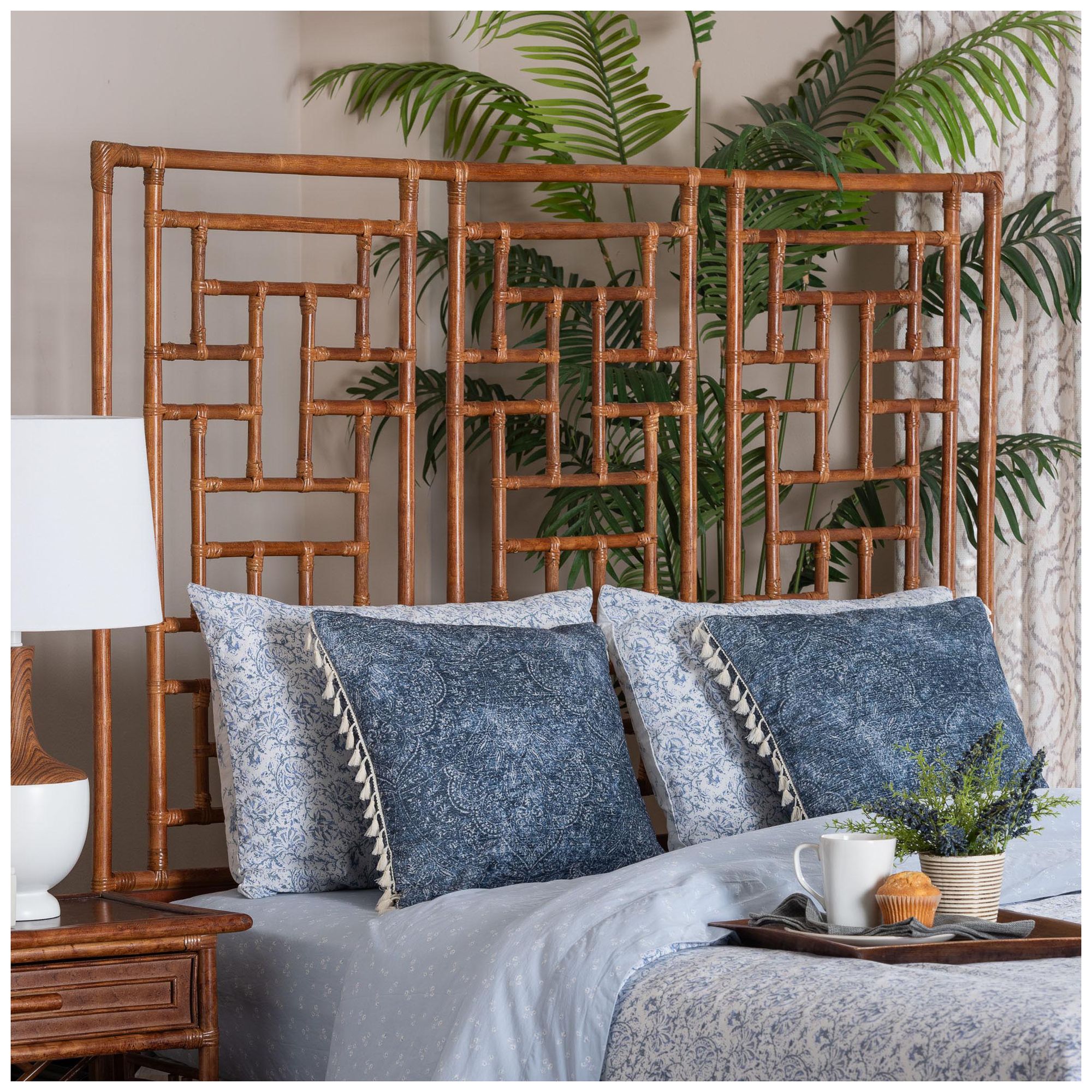 bali & pari Kachiri Marbled Tortoise Natural Rattan Headboard, Queen