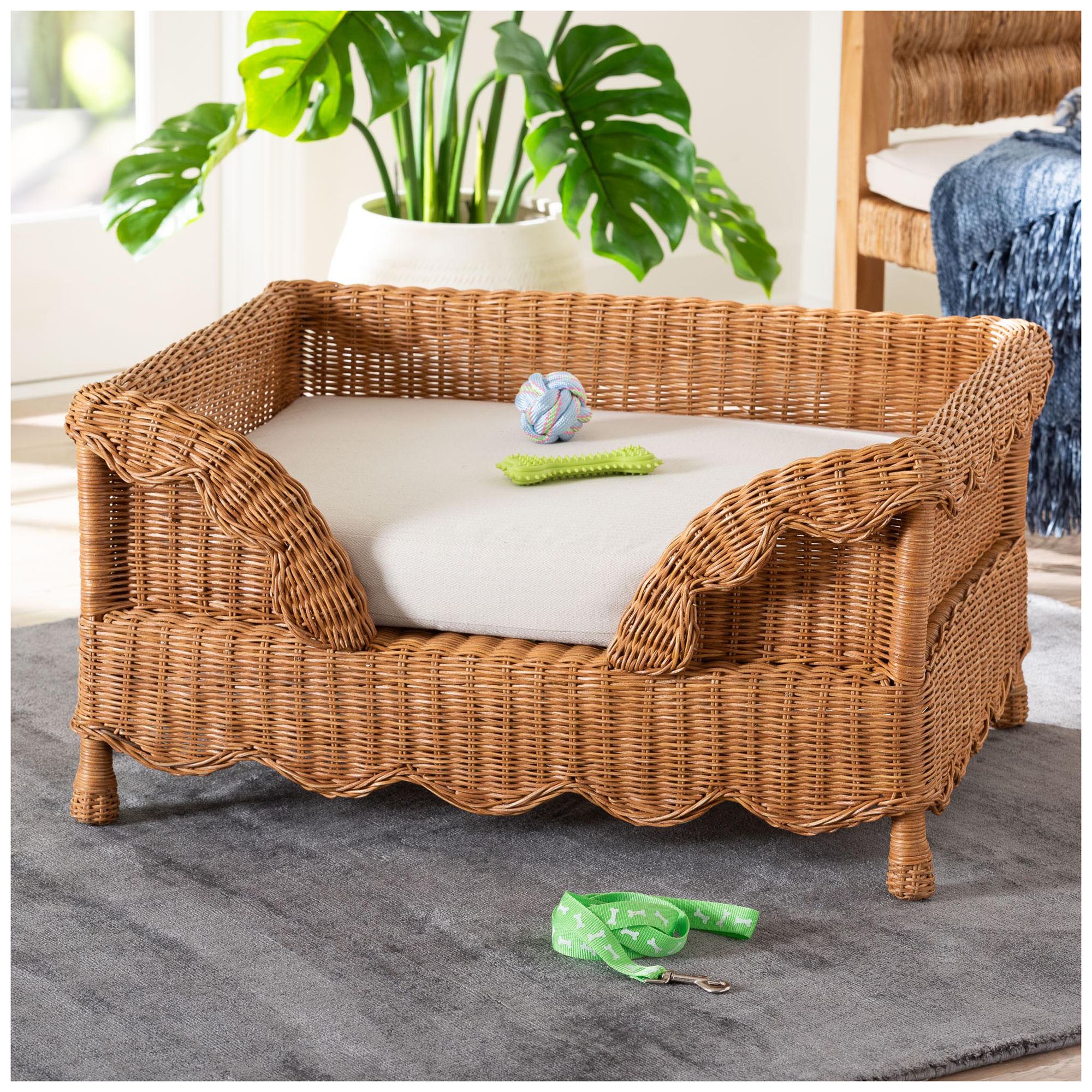 bali & pari Papina Natural Rattan Pet Bed with Removable Cushion