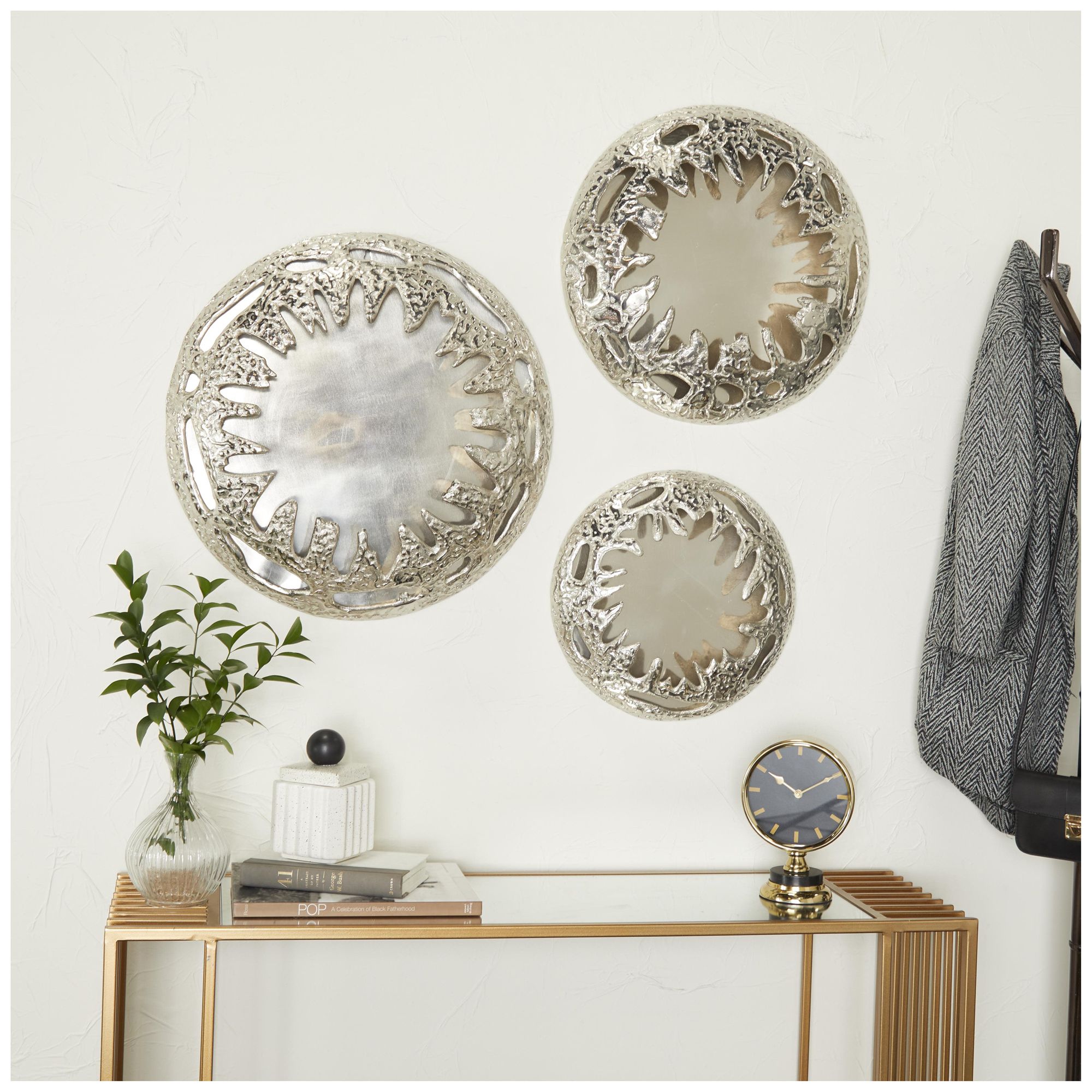Silver Aluminum Metal Contemporary Wall Decor, S/3 21", 18", 15"H