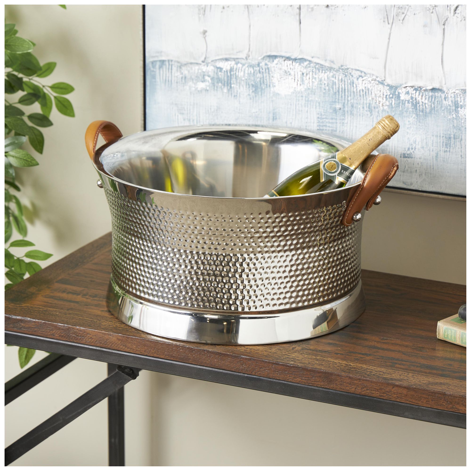 Silver Stainless Steel Metal Traditional Ice Bucket, 21" x 18" x 11"