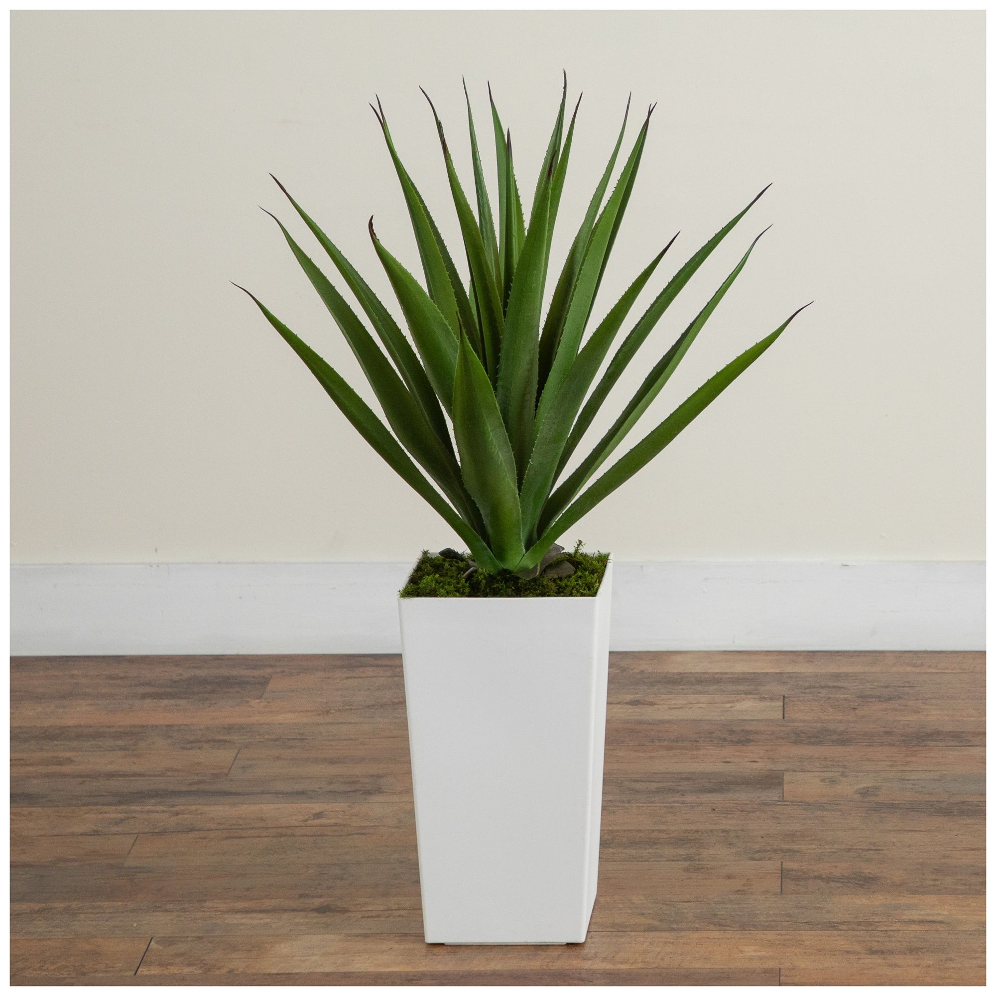 37in. UV Resistant Artificial Agave Plant in White Tower Planter
