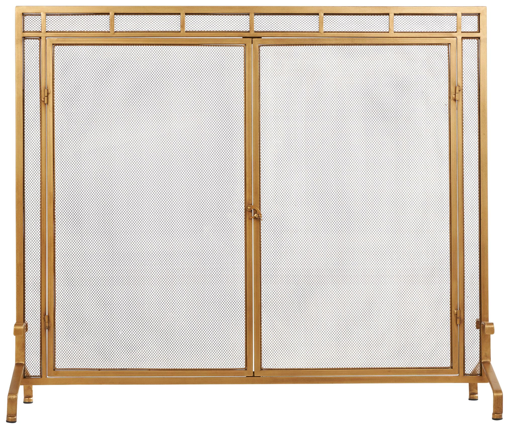 Gold Metal Modern Fireplace Screen, 39" x 13" x 34"