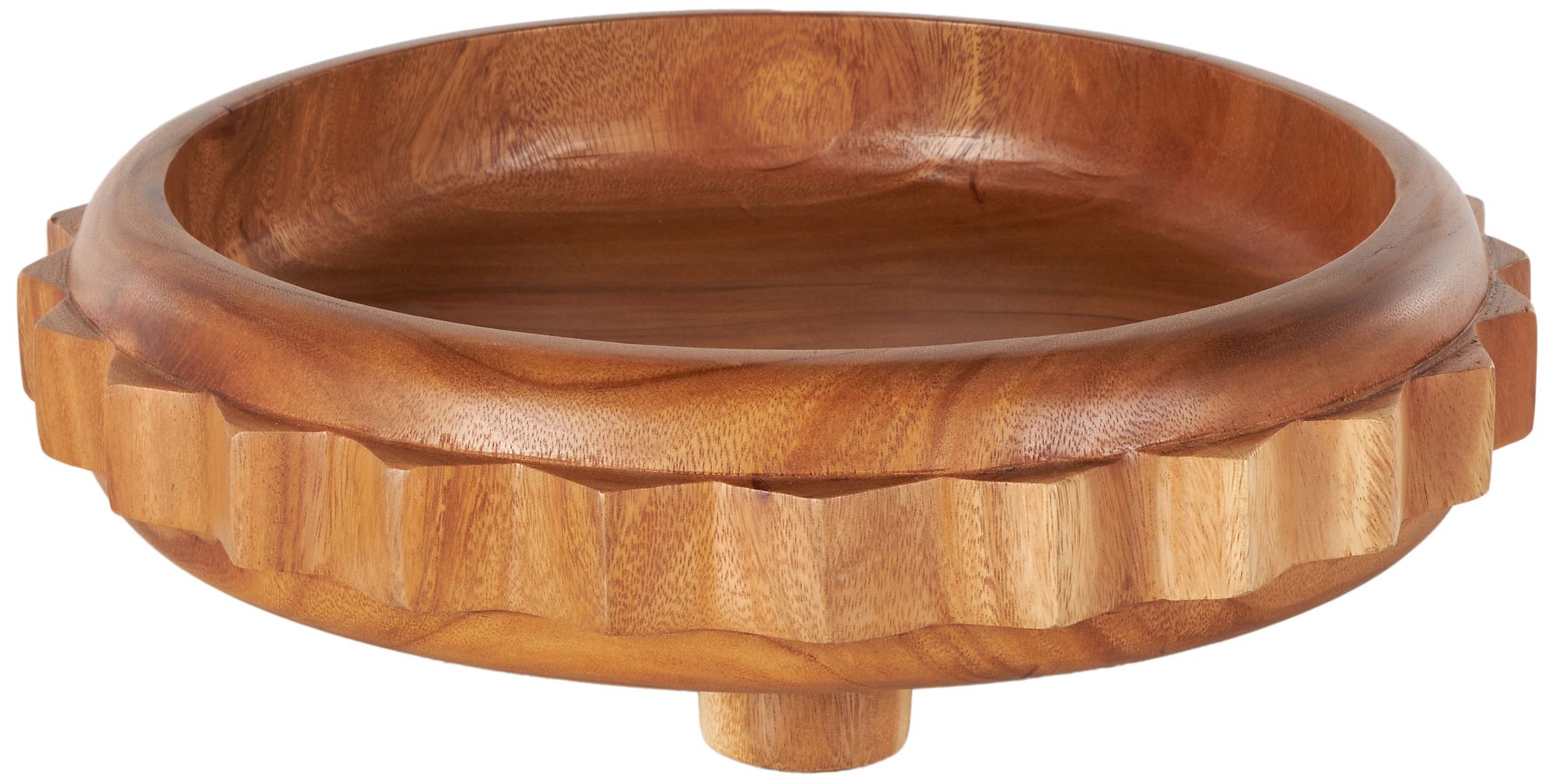 Brown Teak Wood Traditional Decorative Bowl, 18" x 18" x 5"