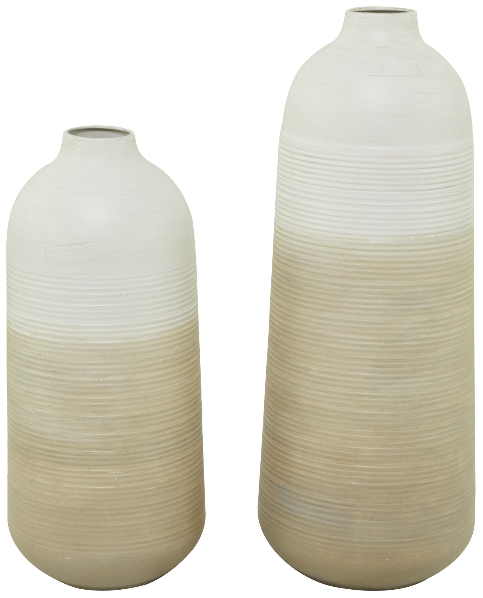Beige Ceramic Rustic Vase, 9" x 8" x 18"