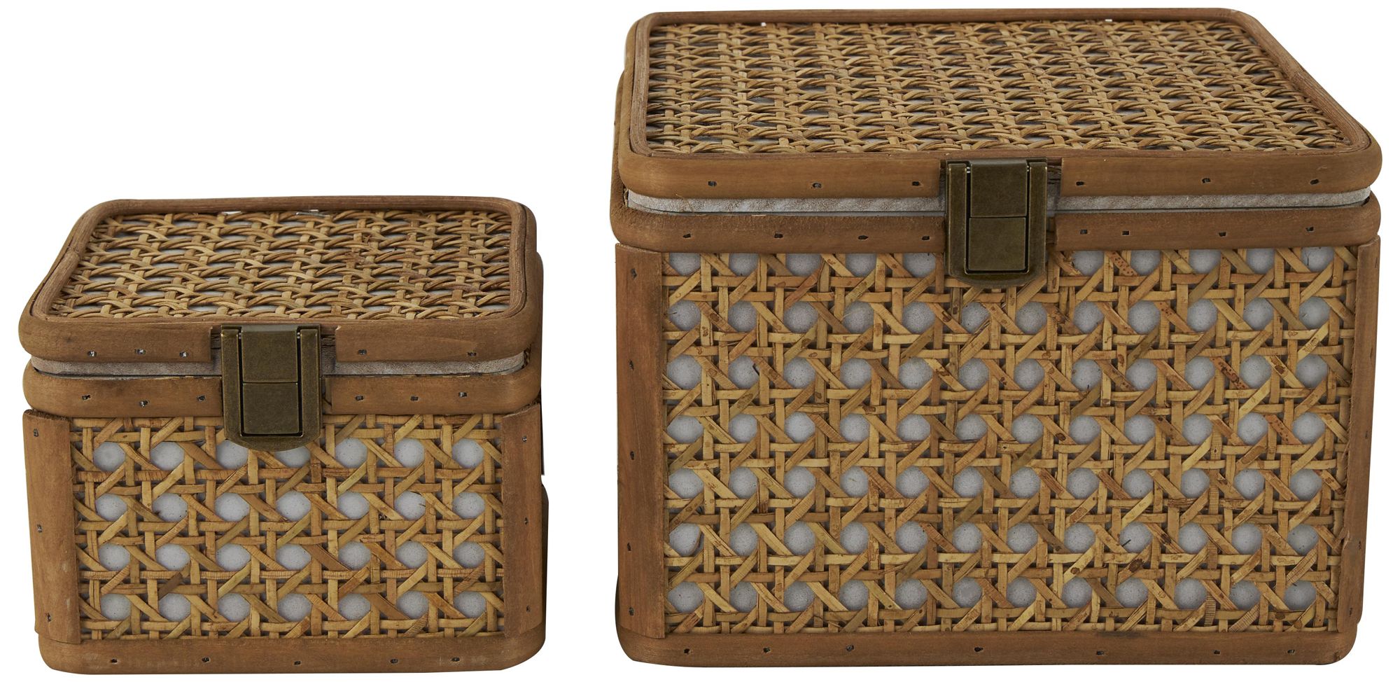 Brown Rattan Handmade Woven Rattan Decorative Box, Set of 2 7", 5"W