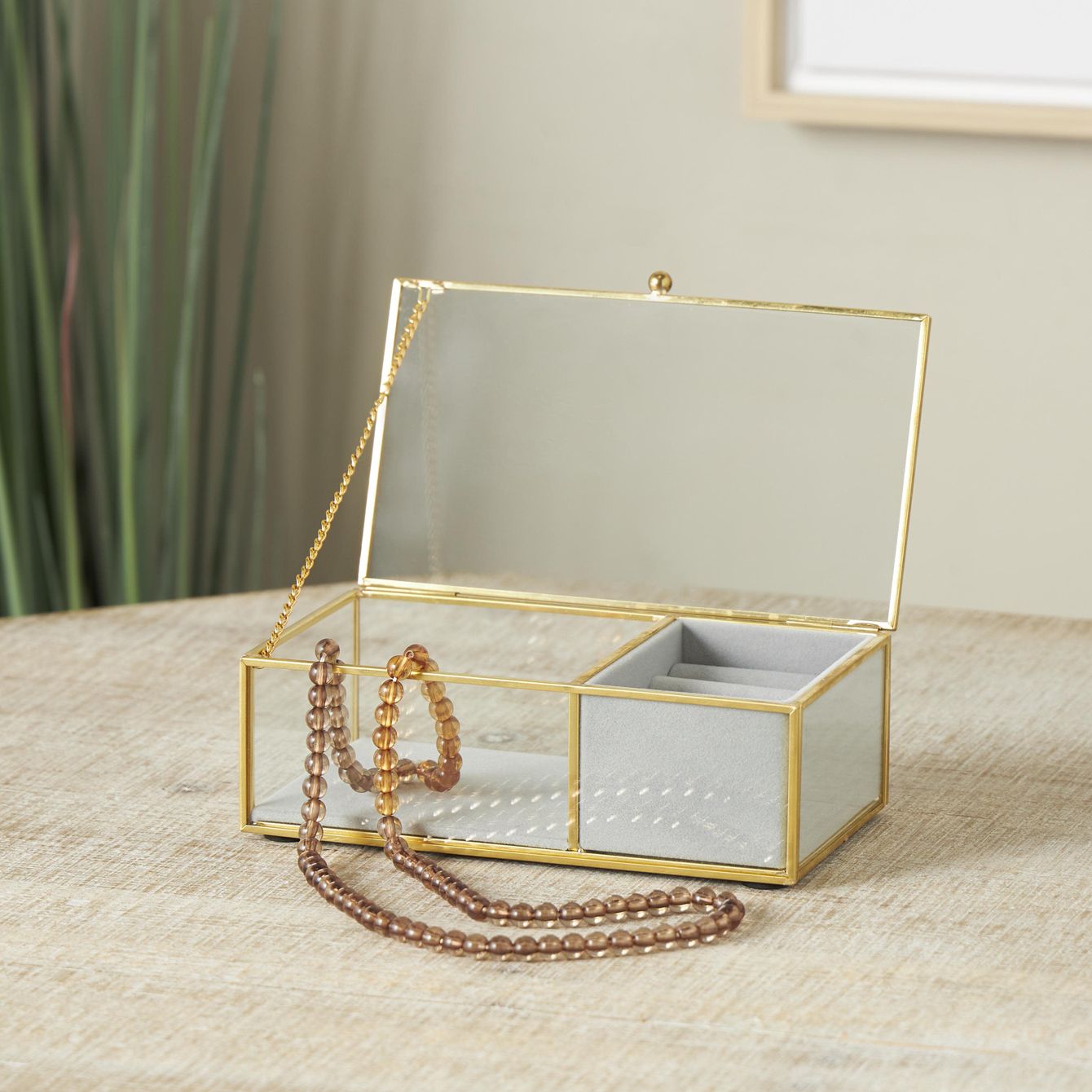 Clear Glass Glam Jewelry Box, 7" x 4" x 3"