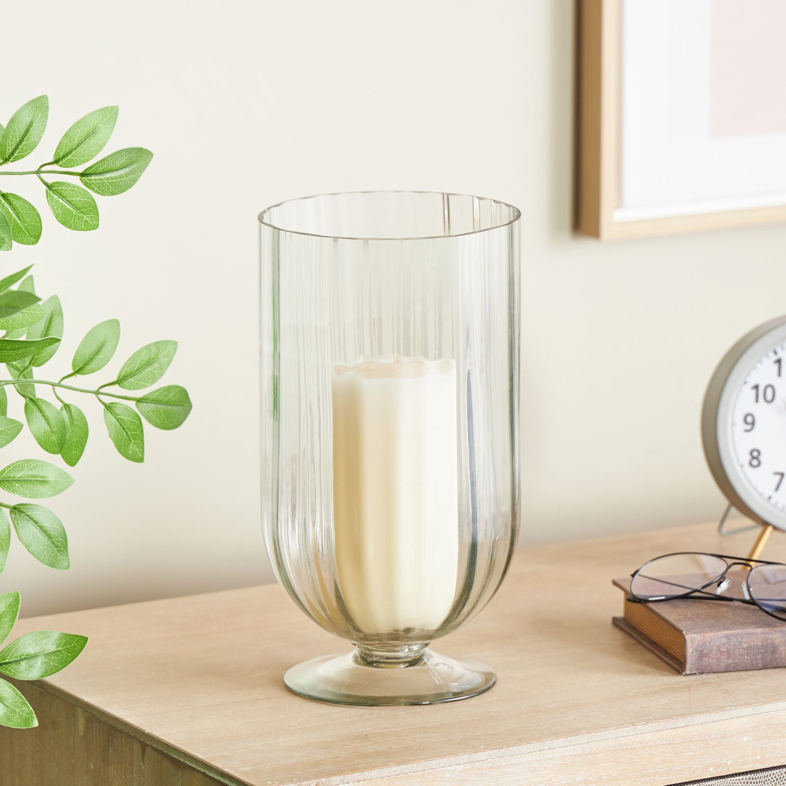 Clear Glass Ribbed Fluted Decorative Candle Holder, 6" x 6" x 13"