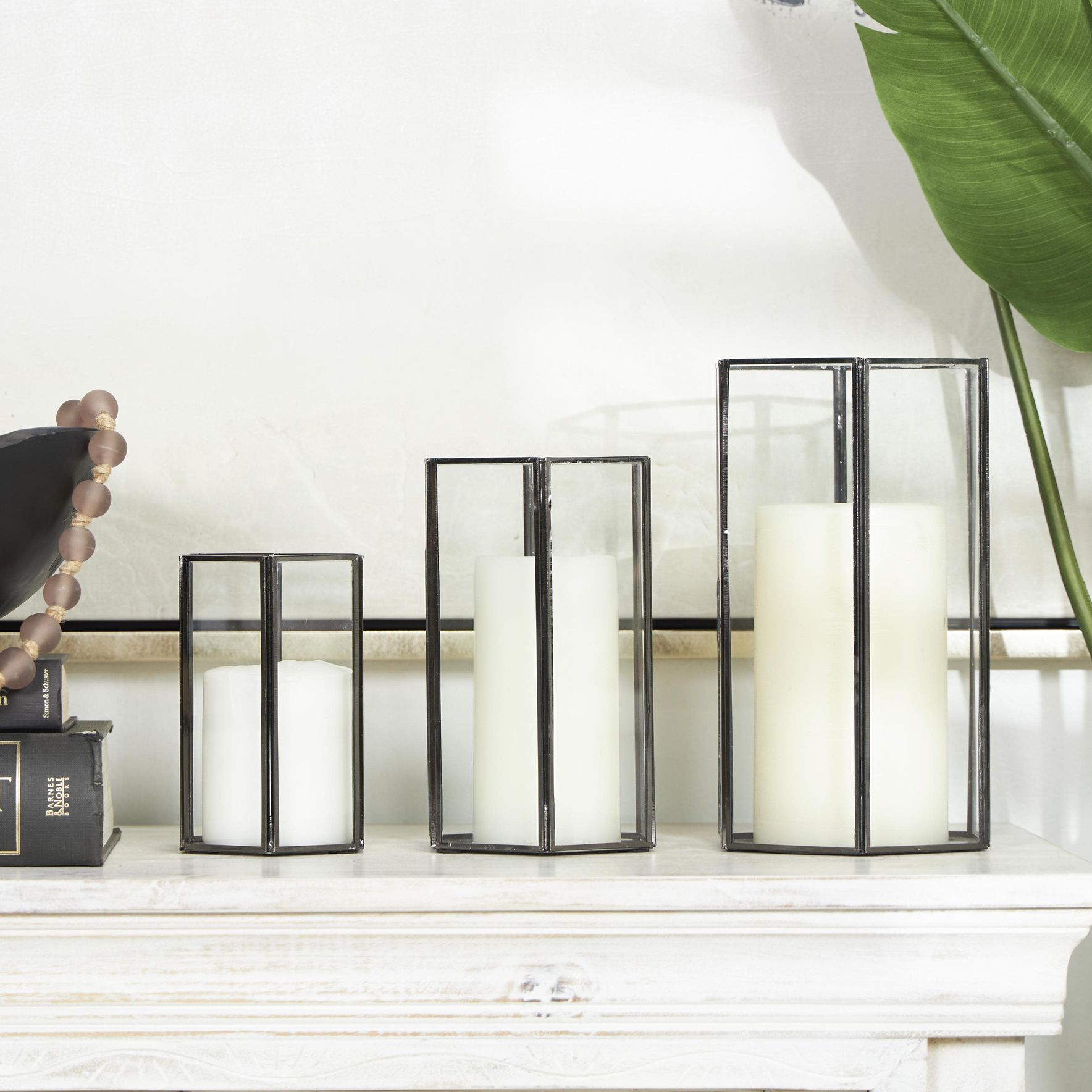 Clear Stainless Steel Metal Contemporary Hurricane Lamp, 10" x 10" x 16"