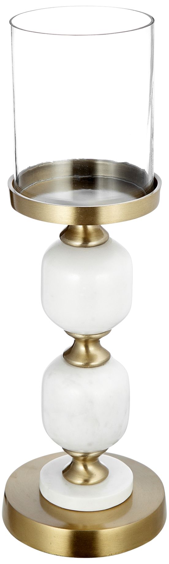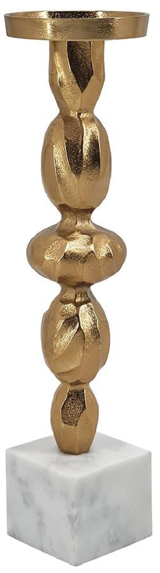 11" Gold & White Marble & Metal Pebble Pillar Holder