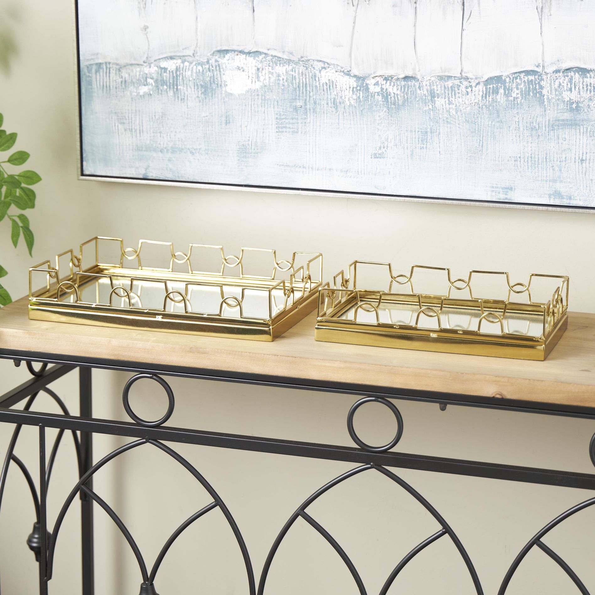 Gold Metal Contemporary Tray, S/2 25"W,