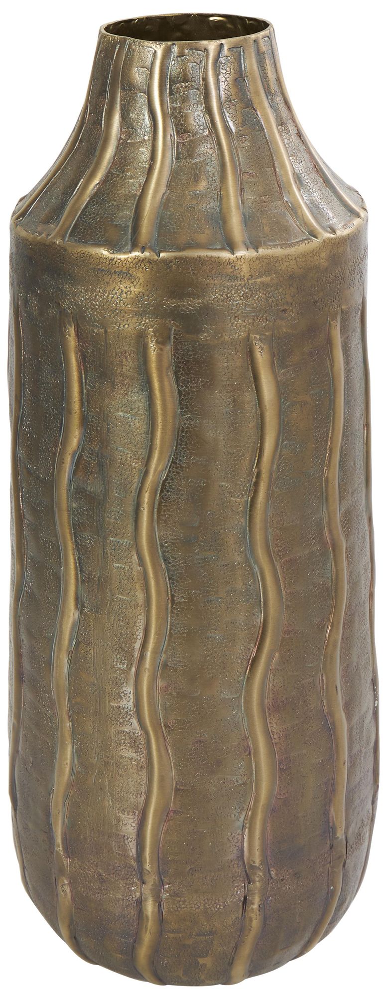 Gold Aluminum Metal Contemporary Vase, 9" x 9" x 31"