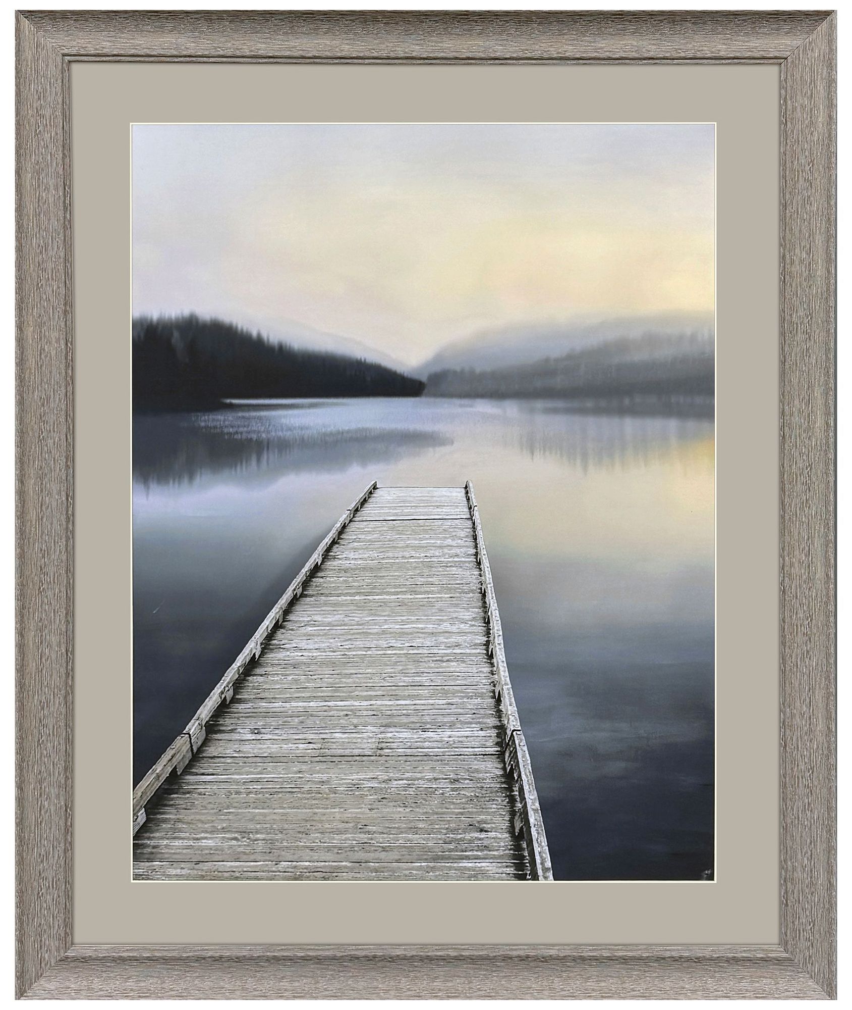 60" x 35" Grey Horizon Silver Frame Hand Painted Canvas Wall Art
