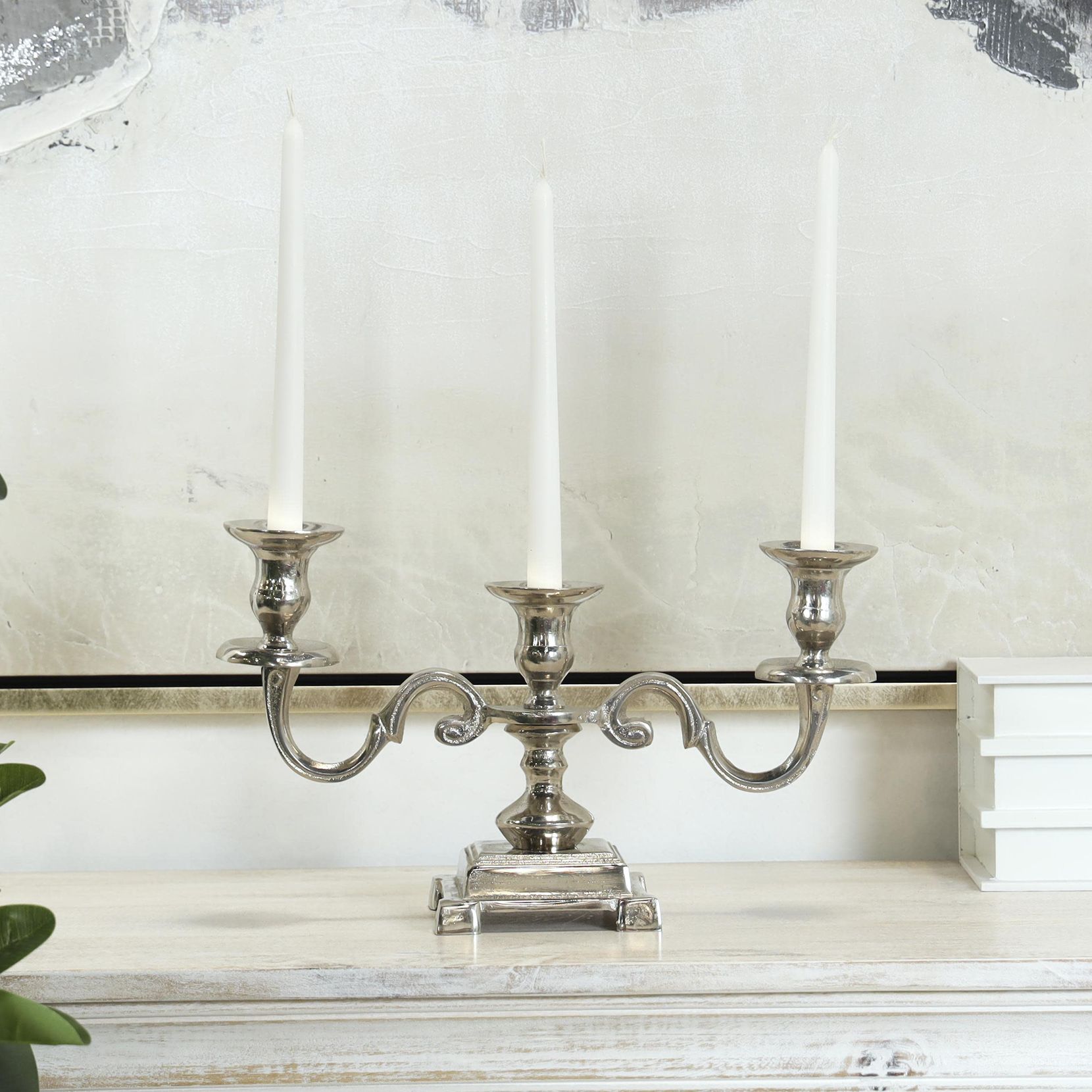 Silver Aluminum Slim Decorative Candle Holder, Set of 3 14", 12", 10"H
