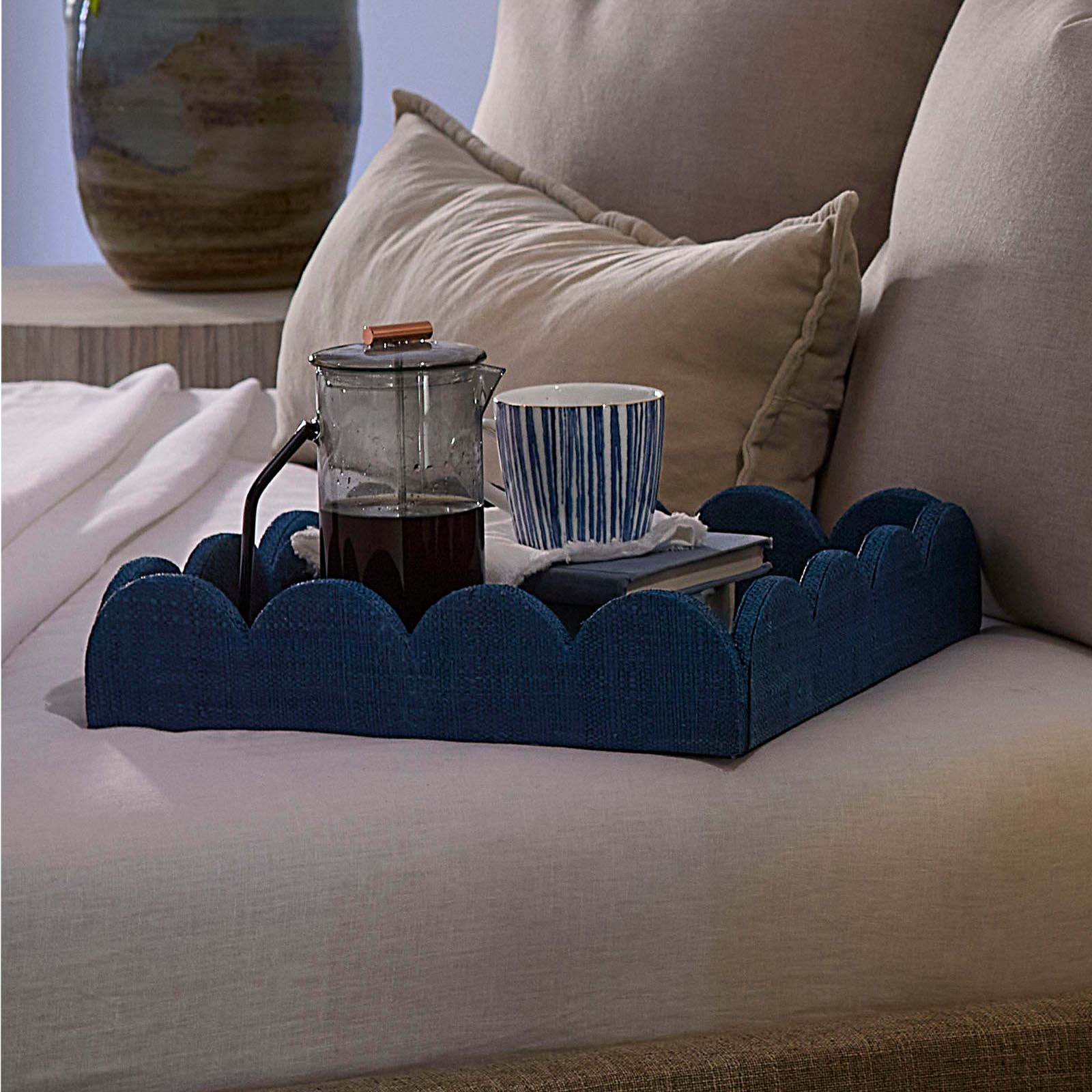 Jamie Young Wonderland Scalloped Small Decorative Raffia Tray, Indigo