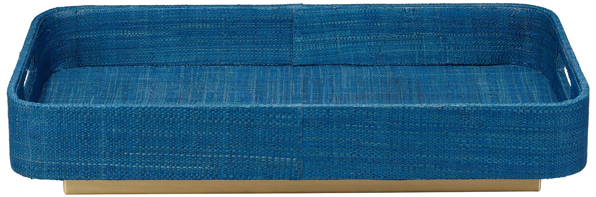 Jamie Young Utopia Indigo Raffia Decorative Tray with Antique Brass Base