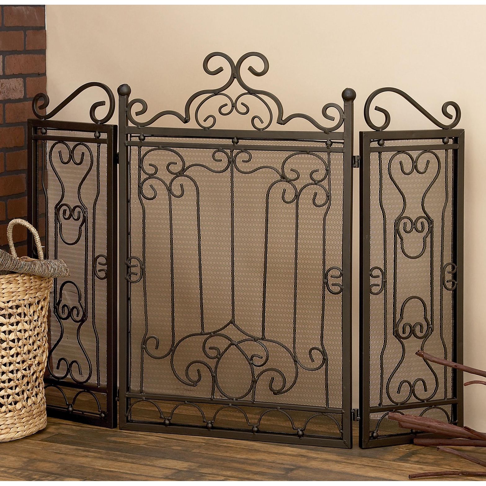 Dark Brown Metal Traditional Fireplace Screen, 48" x 1" x 38"