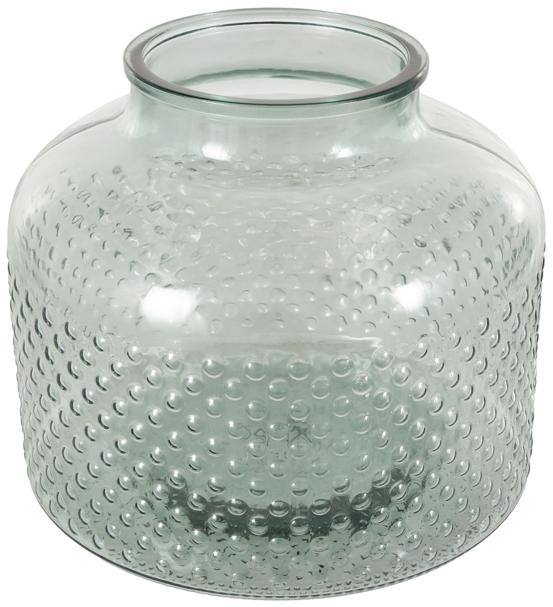 Green Glass Coastal Vase, 12" x 12" x 11"
