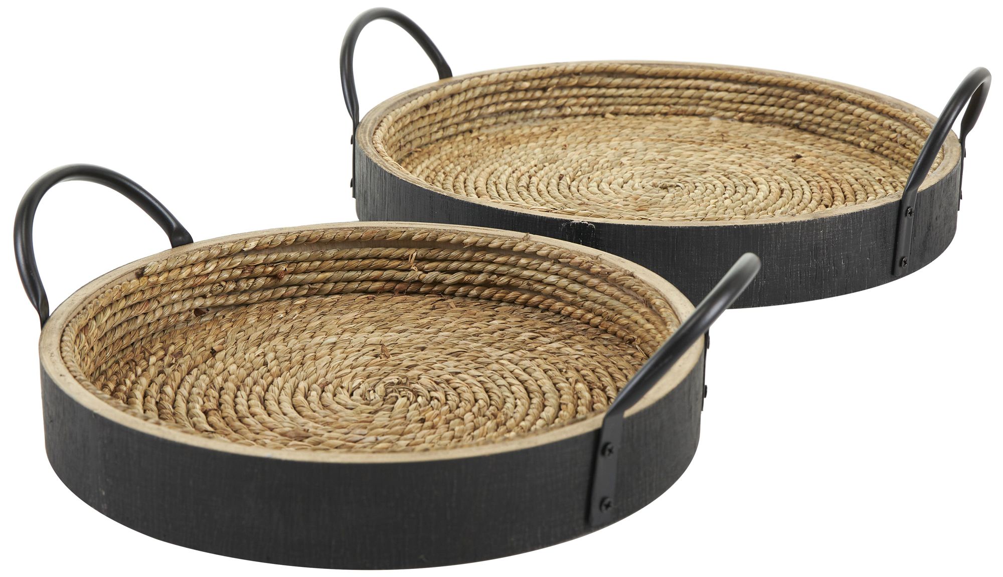 Black Wooden Bohemian Tray, S/2 15", 12"W