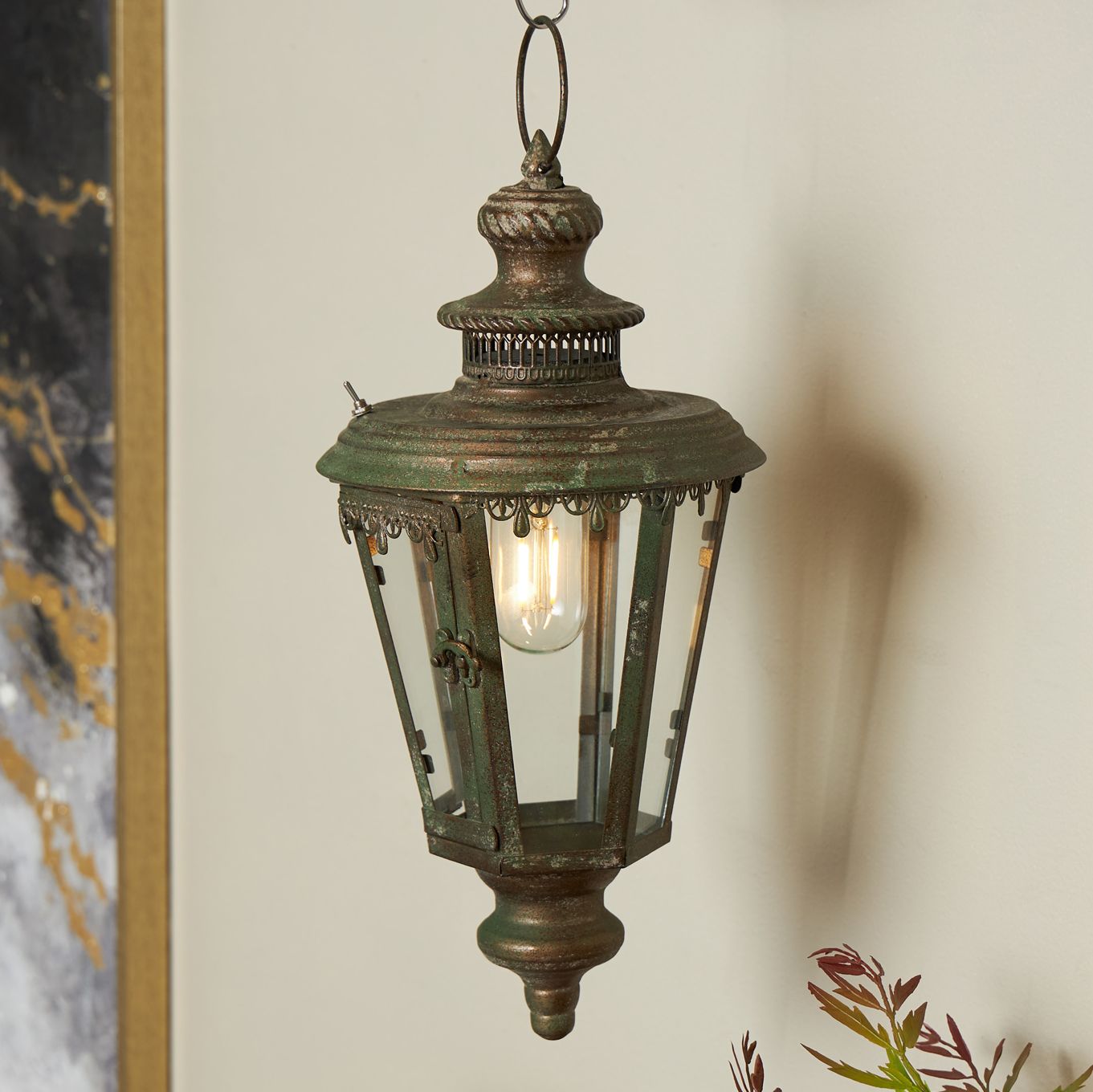 Brown Metal Traditional Candle Lantern, 8" x 8" x 16"