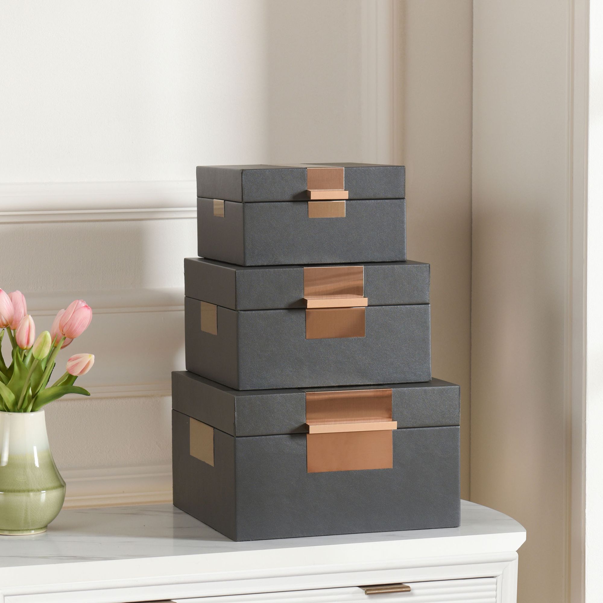Norman Wyatt John Dark Smoke Leather And Bronze Accessory Box Set of 3
