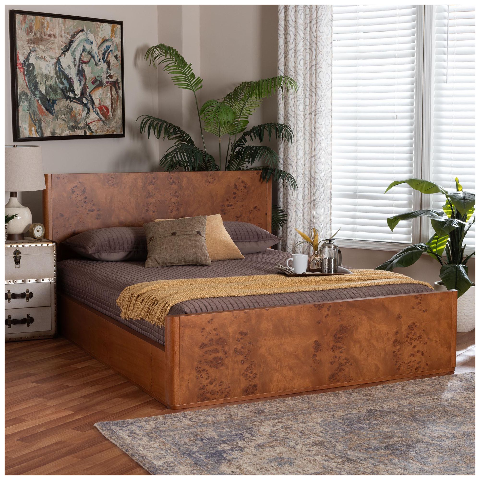 bali & pari Fuentes Burl Wood Bed Frame - Low-Profile Platform Bed, Queen