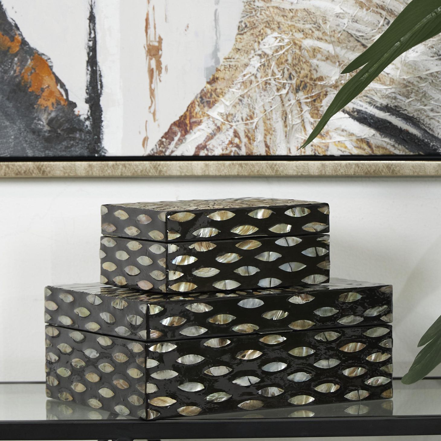 Black Mother of Pearl Shell Coastal Box, S/2 12", 8"W