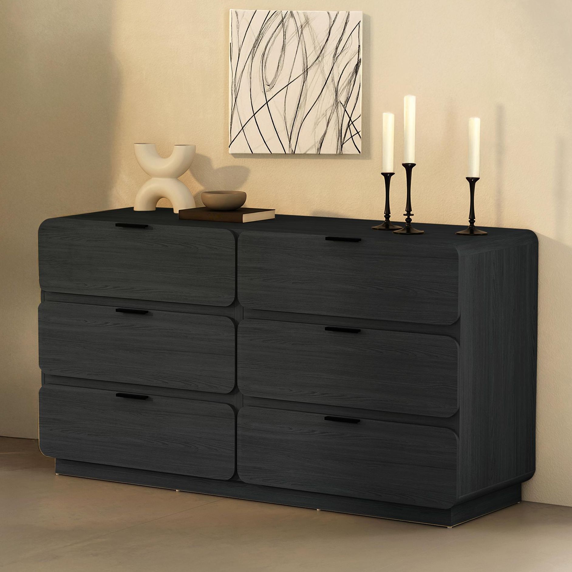 Chrystie Contemporary Modern 60" Dresser in Black (6-Drawer)