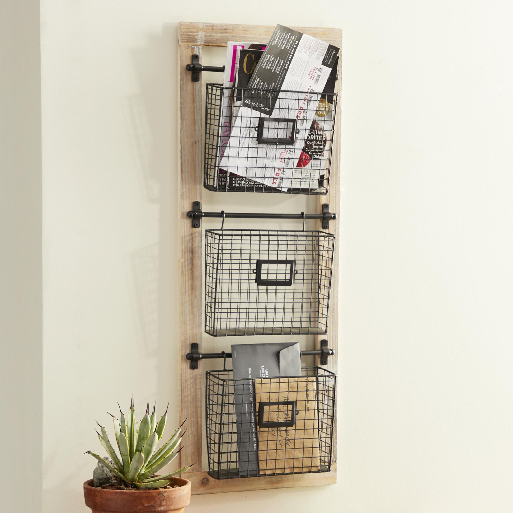 Black Metal Farmhouse Magazine Rack Holder, 14" x 4" x 36"