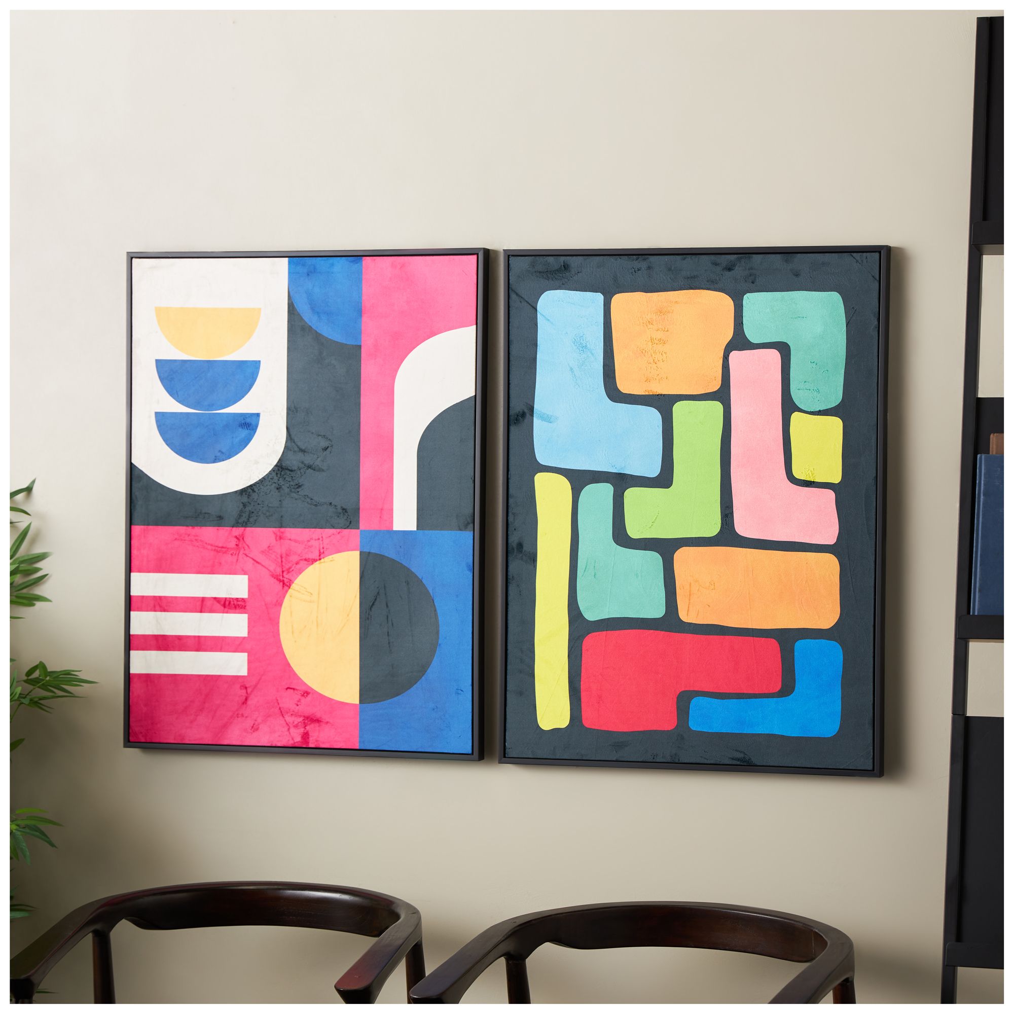 Multi Colored Canvas Modern Framed Wall Art, S/2 25"W, 33"H