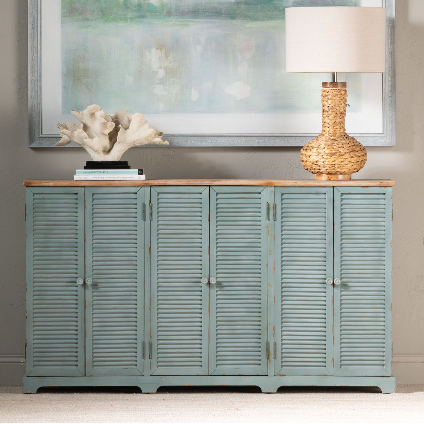 63 in. Blue Solid Wood 6 Door Sideboard_Buffet Table