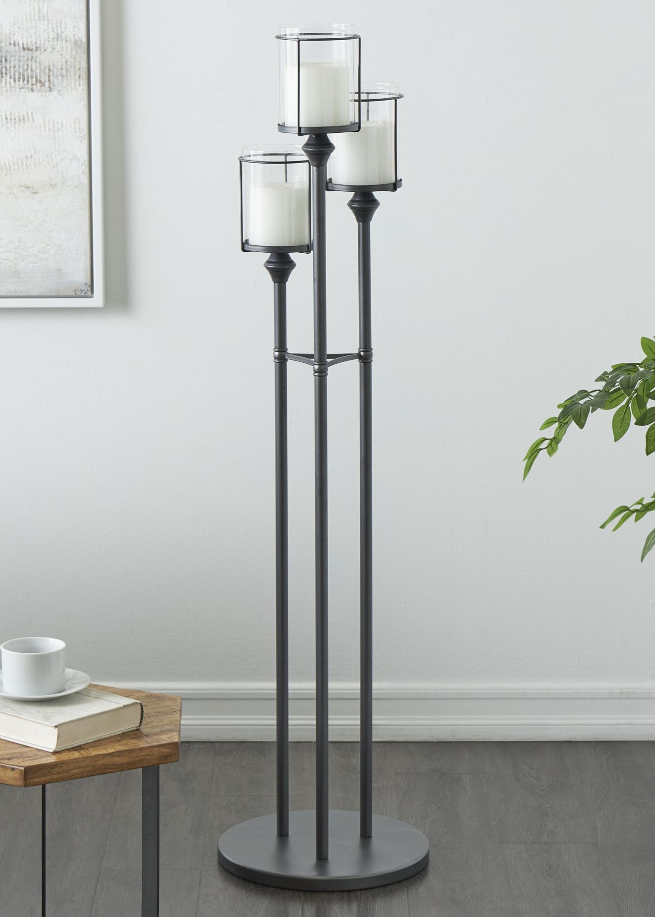Black Metal Transitional Hurricane Lamp, 14" x 14" x 55"