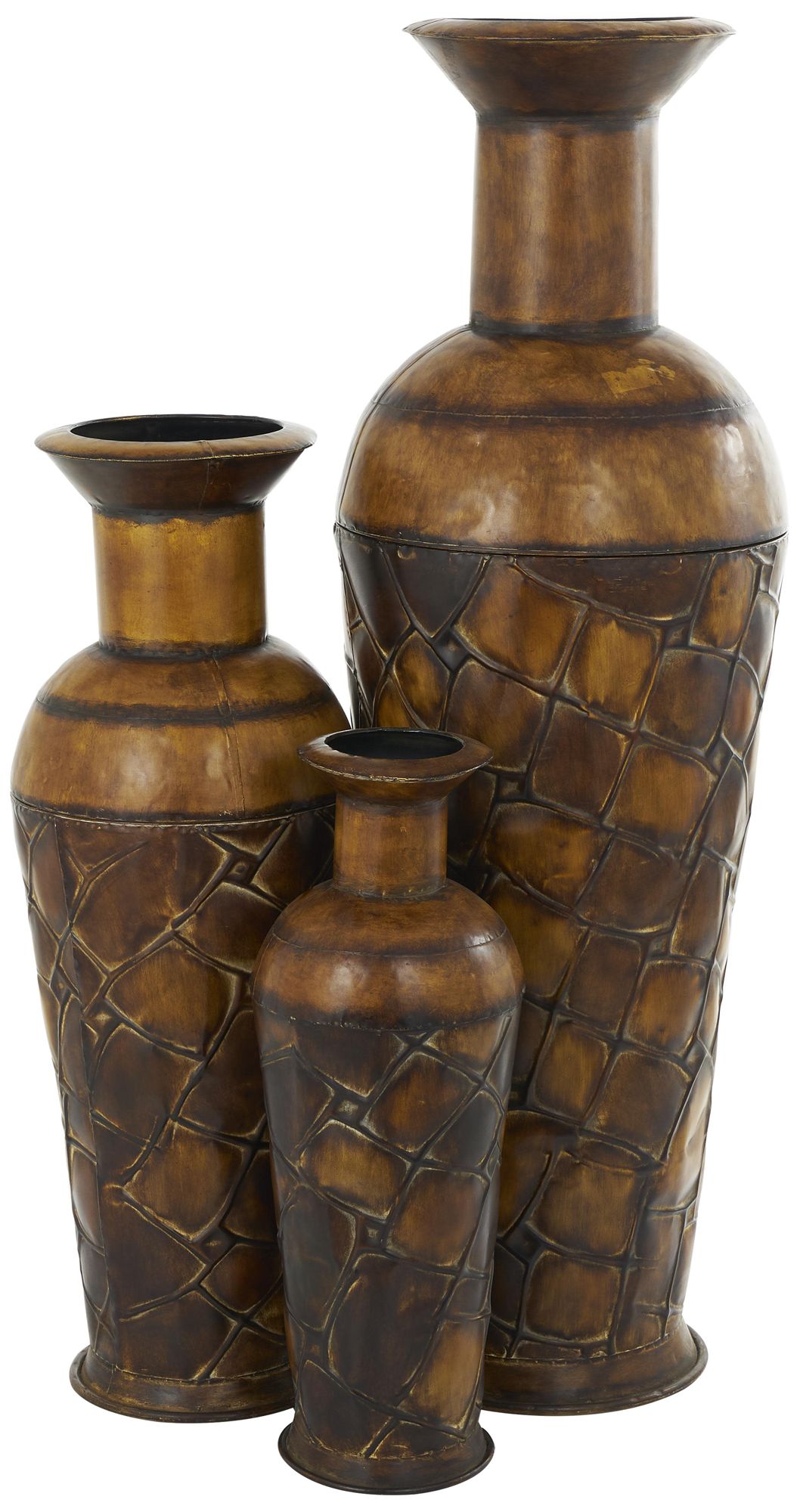 Brown Metal Rustic Vase, S/3 50", 35", 26"H