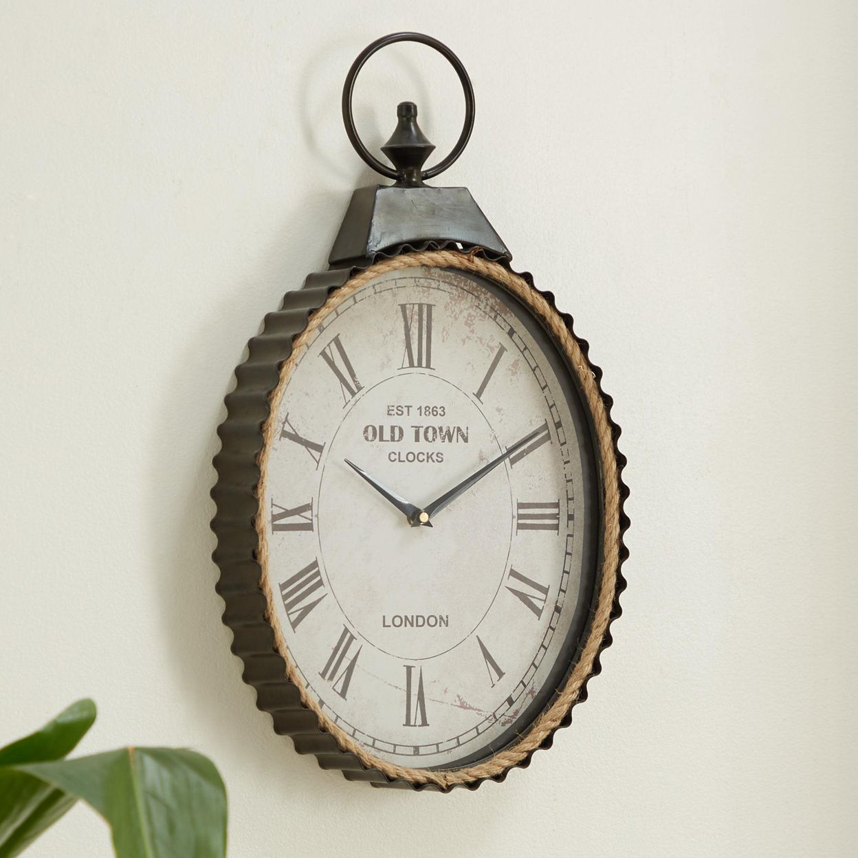 Black Metal Industrial Wall Clock, 12" x 3" x 21"