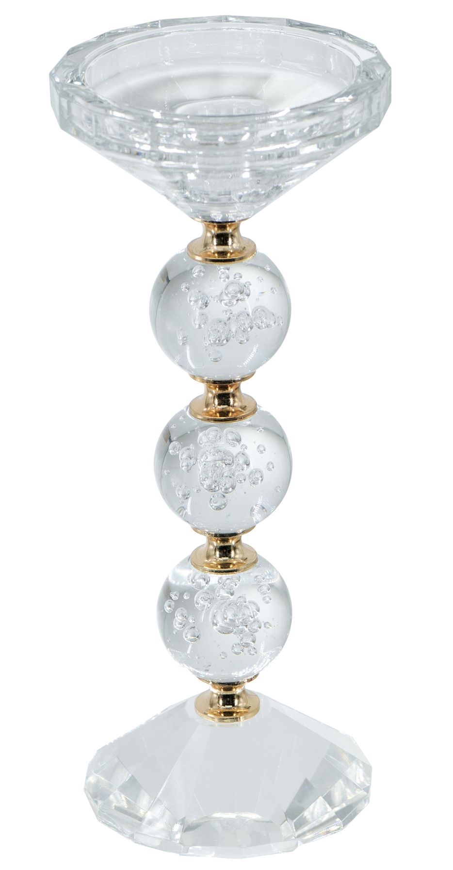 Clear Glass Pillar Candle Holder with Gold Alloy Accents - 9" - Clear, Gold