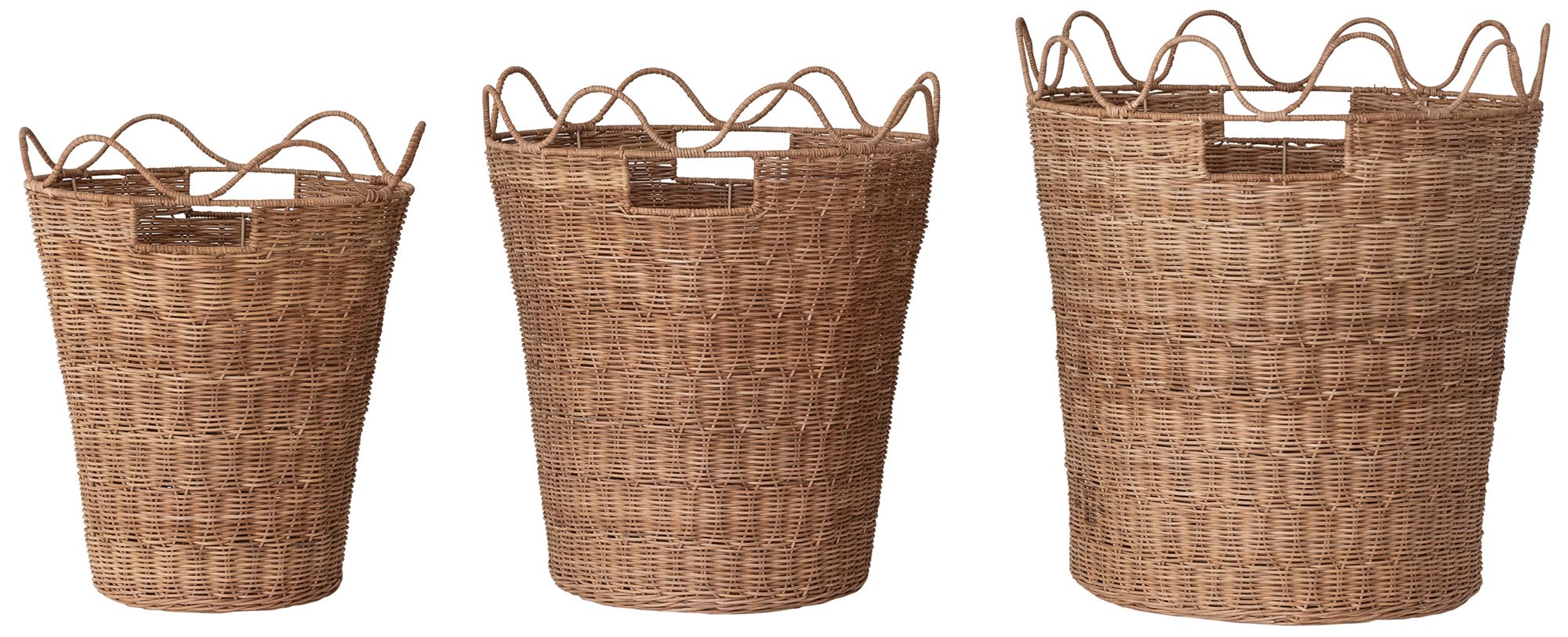 3-Piece Hand-Woven Rattan Scalloped Baskets with Handles, Natural Finish