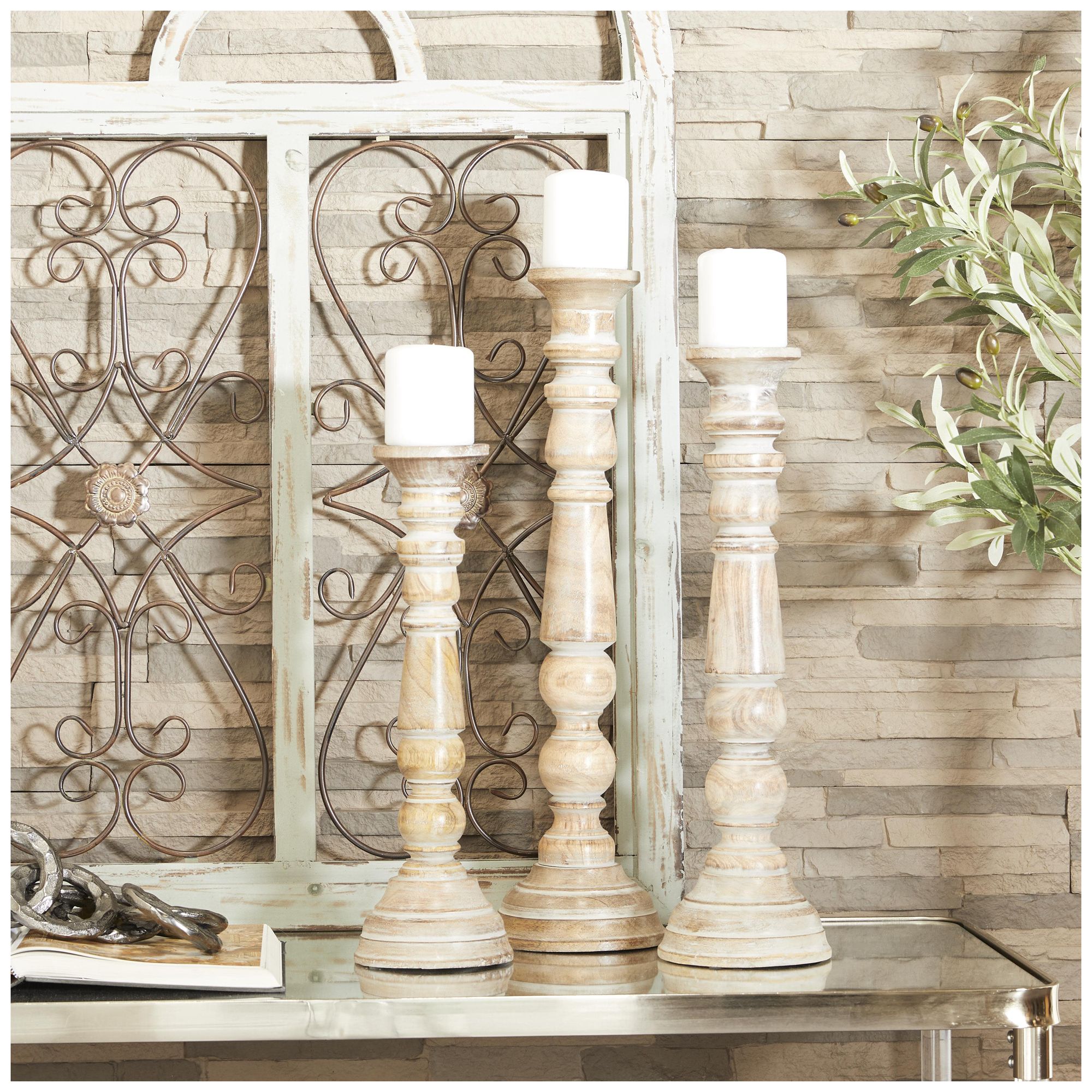 White Ceramic Glam Candle Holder, S/2 12", 9"H