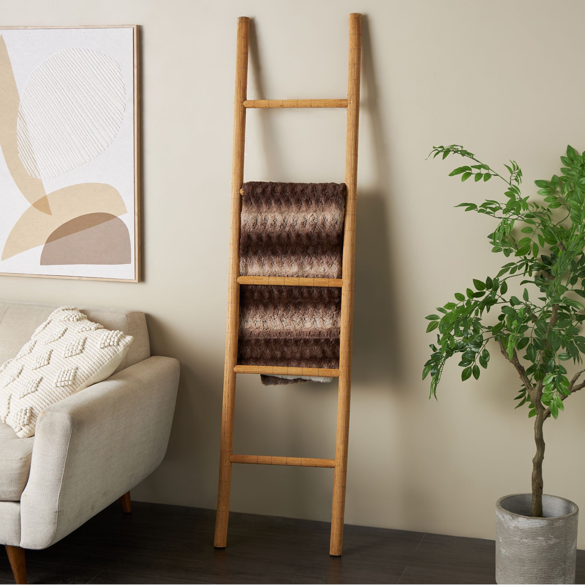 Brown Wood Coastal Ladder, 17" x 2" x 71"