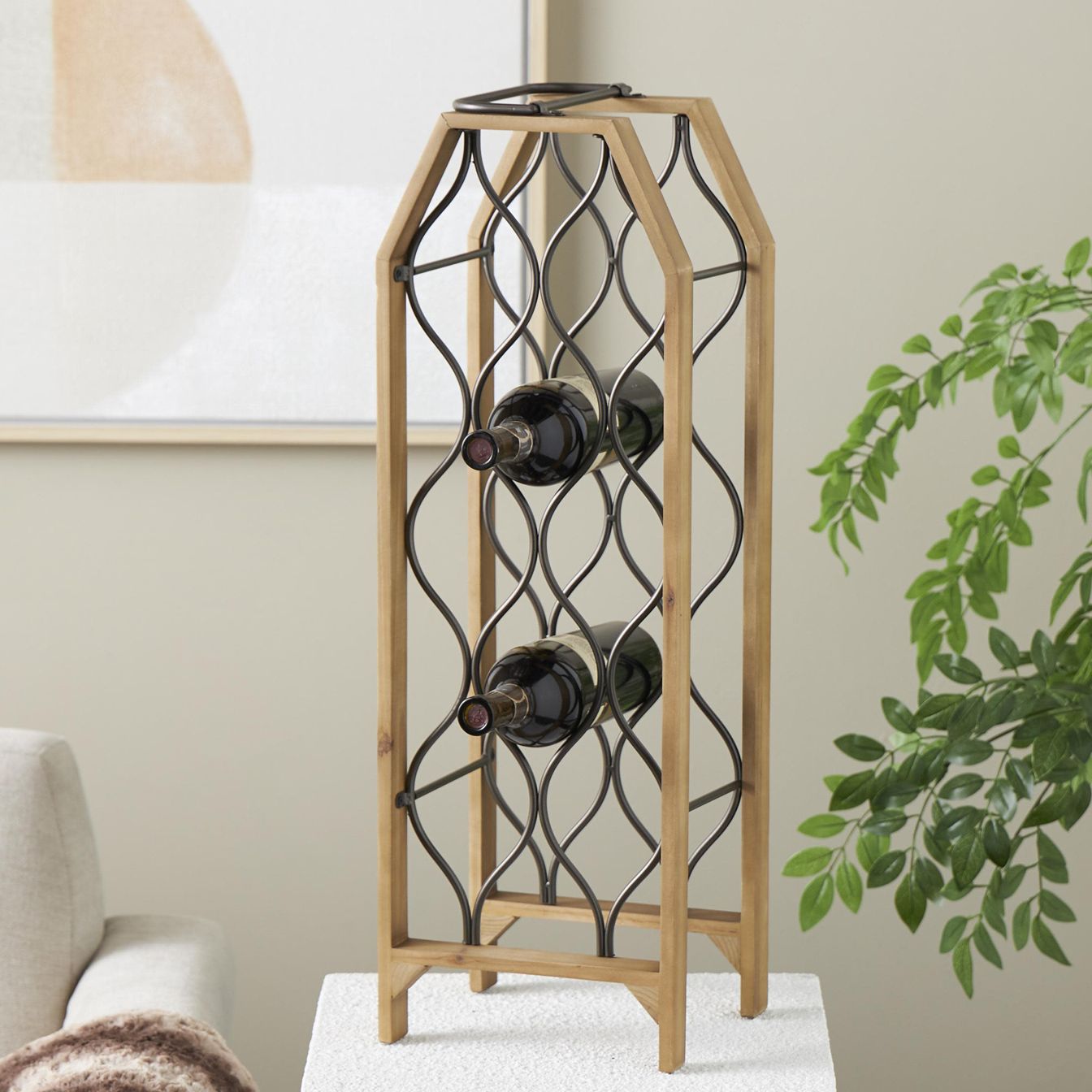 Brown Wood Industrial Wine Rack, 10" x 9" x 29"