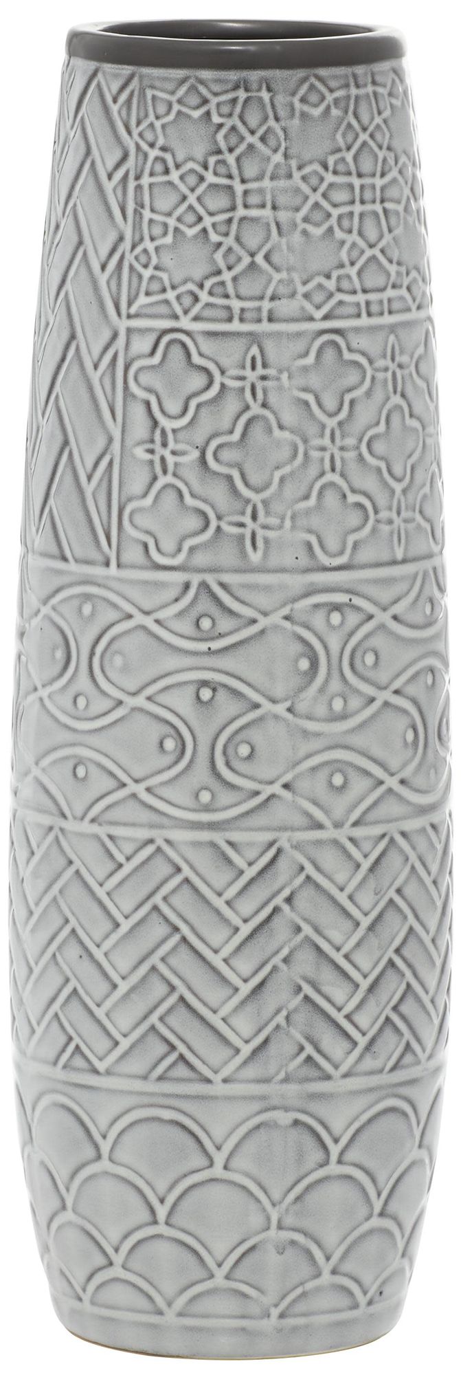 Gray Ceramic Eclectic Vase, 5" x 5" x 16"