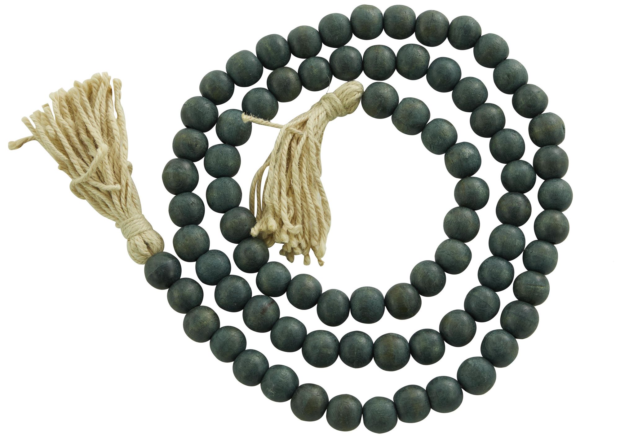 Green Mango Wood Bohemian Garland with Tassel, 80" x 1" x 1"