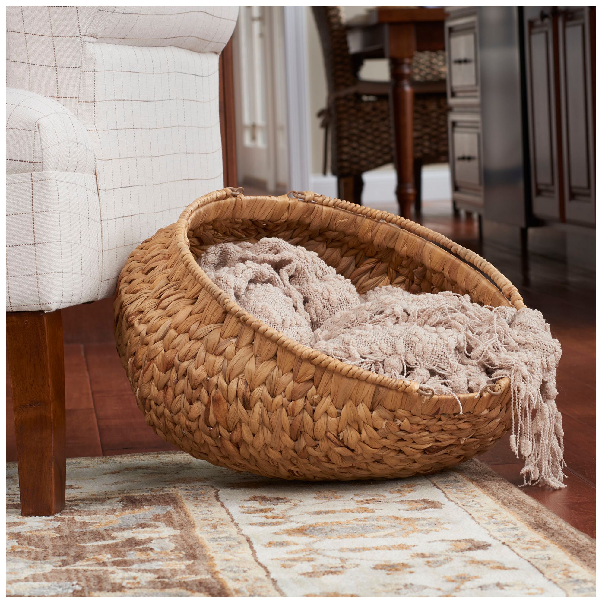 Round Woven Basket with Handles, Water Hyacinth Wicker Basket with Handles
