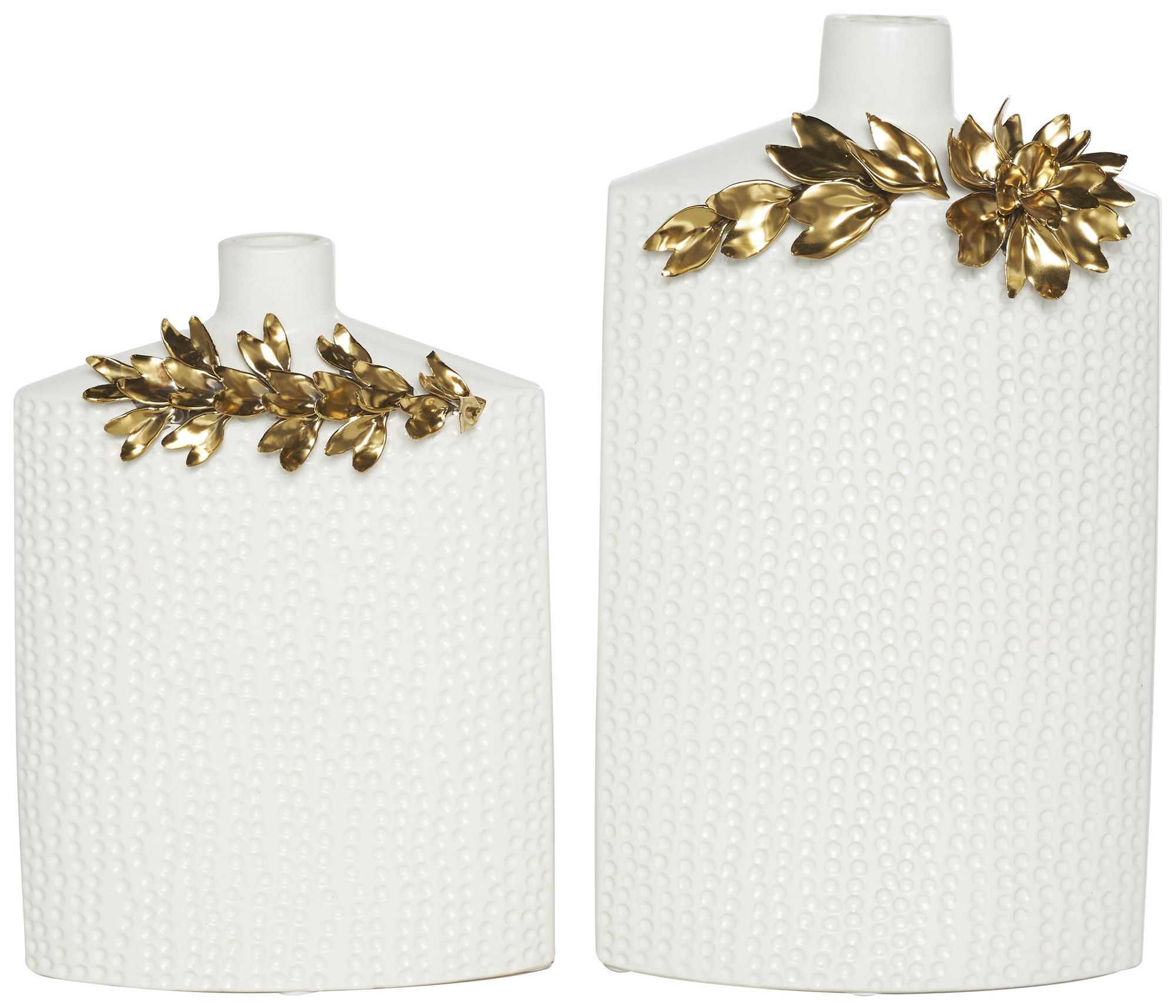 White Ceramic Glam Vase, S/2 16", 12"H