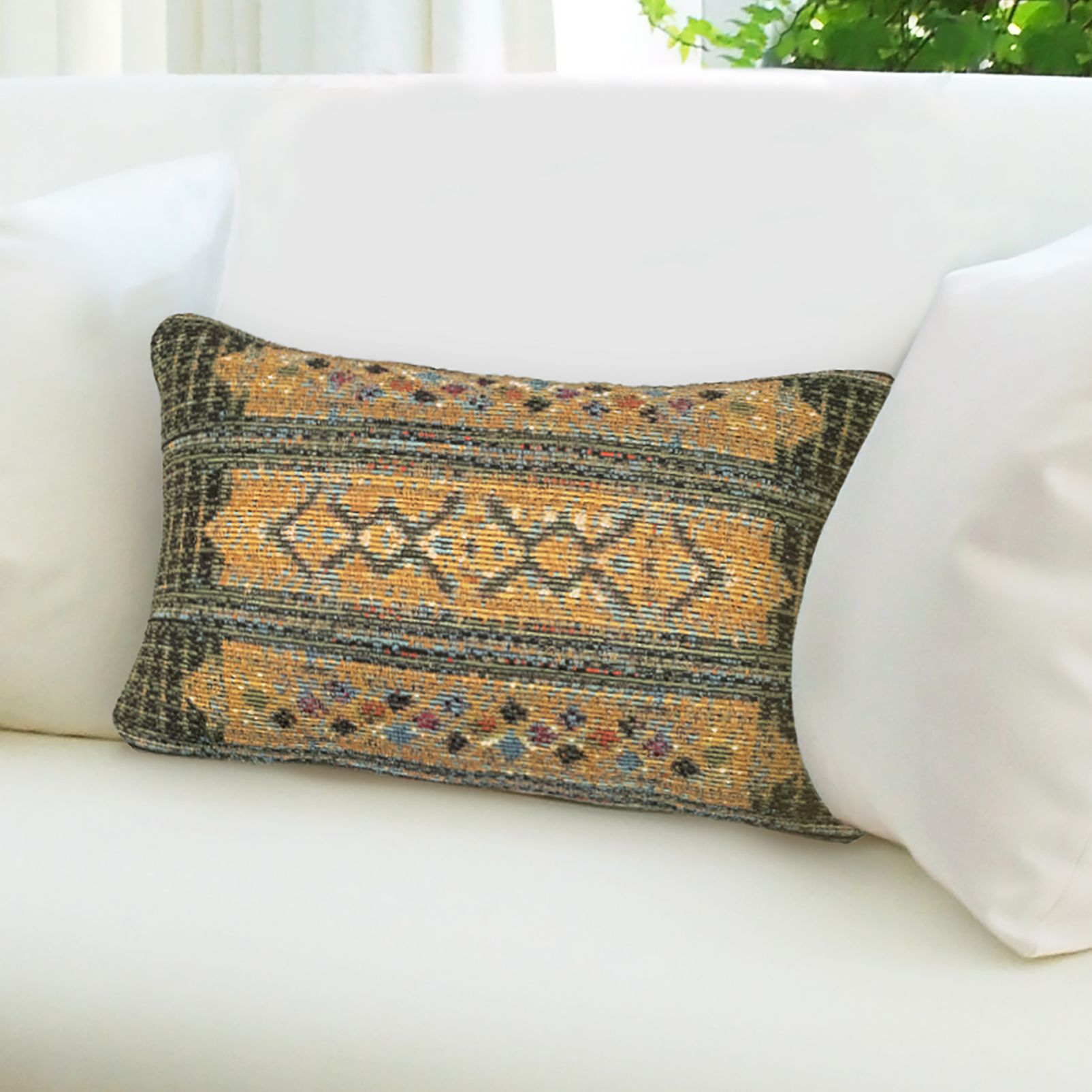 Marina Gold Tribal Stripe 18" Square Indoor-Outdoor Pillow