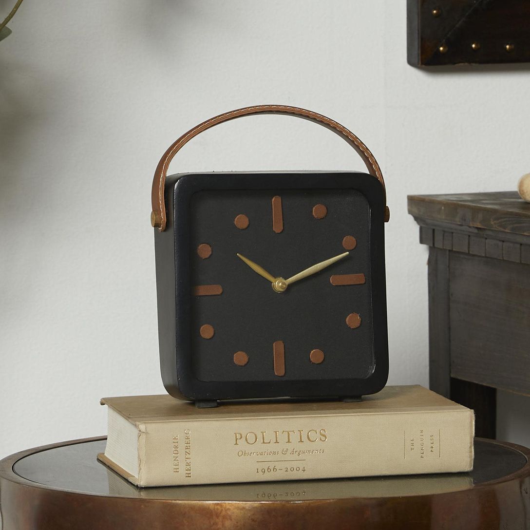 Black Metal Industrial Clock, 10" x 3" x 8"