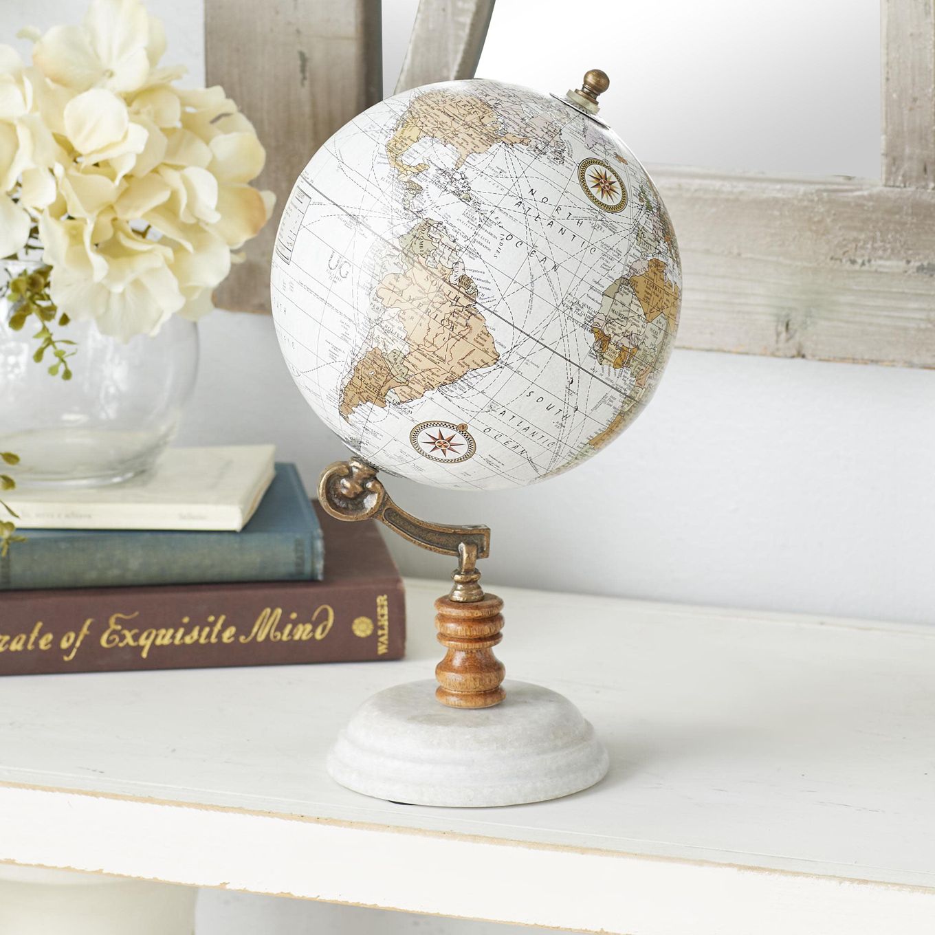 White Marble Contemporary Globe, 7" x 7" x 11"