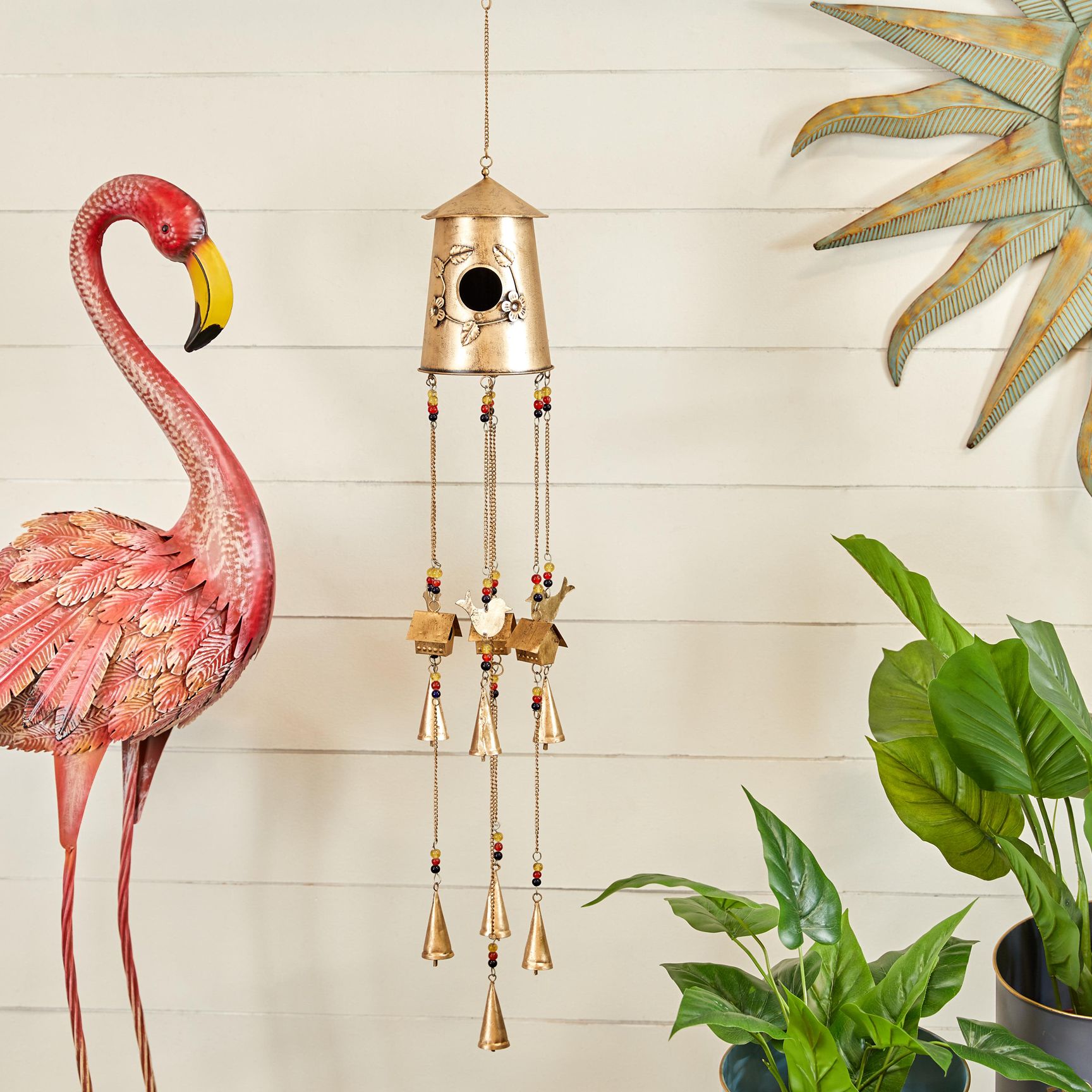 Bronze Metal Rustic Windchime, 7" x 5" x 41"