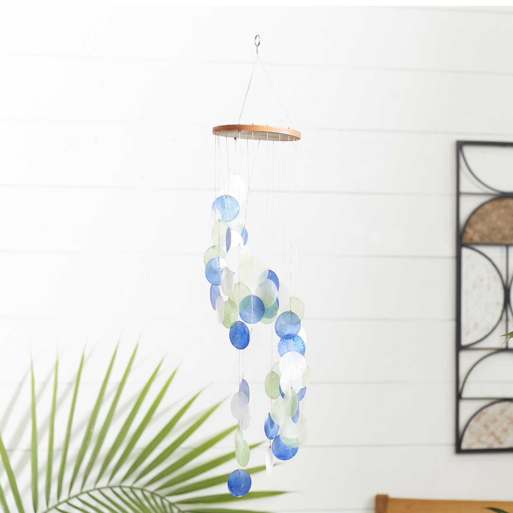 Blue Capiz Shell Coastal Windchime, 6" x 6" x 31"